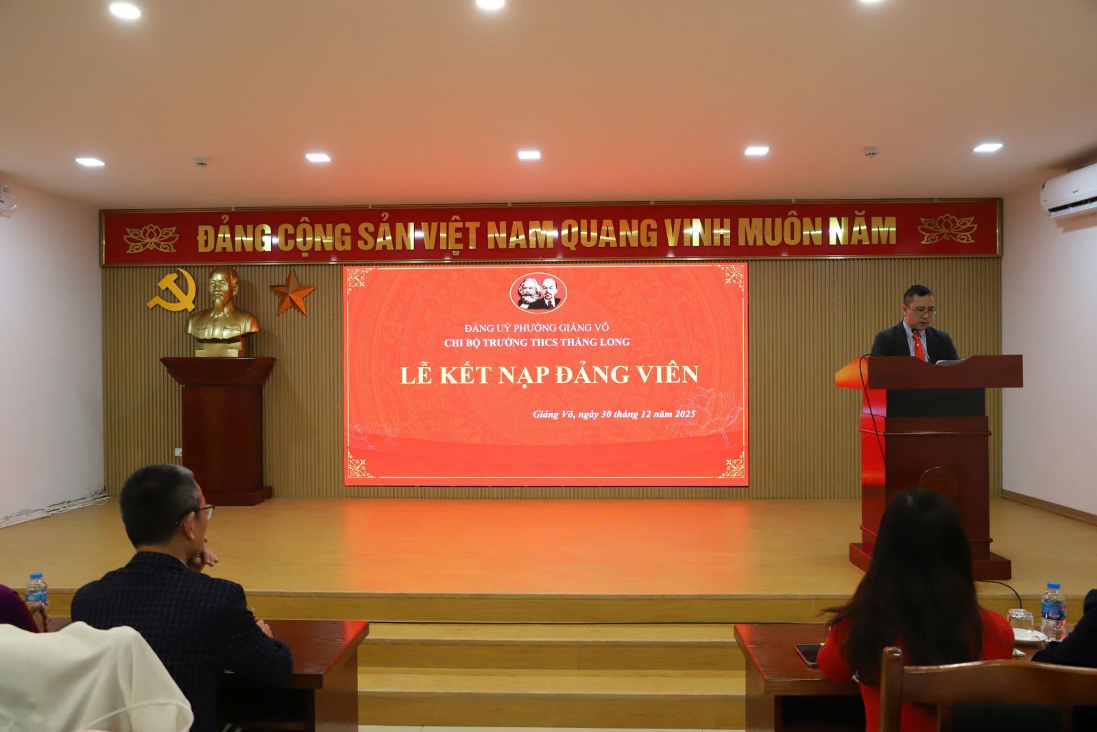 Ngày 30 tháng 12 năm 2025, tại Trường THCS Thăng Long, buổi lễ kết nạp Đảng viên đã diễn ra thành công tốt đẹp, góp phần khẳng định bước trưởng thành mới của các đồng chí đảng viên trẻ tuổi, năng động.