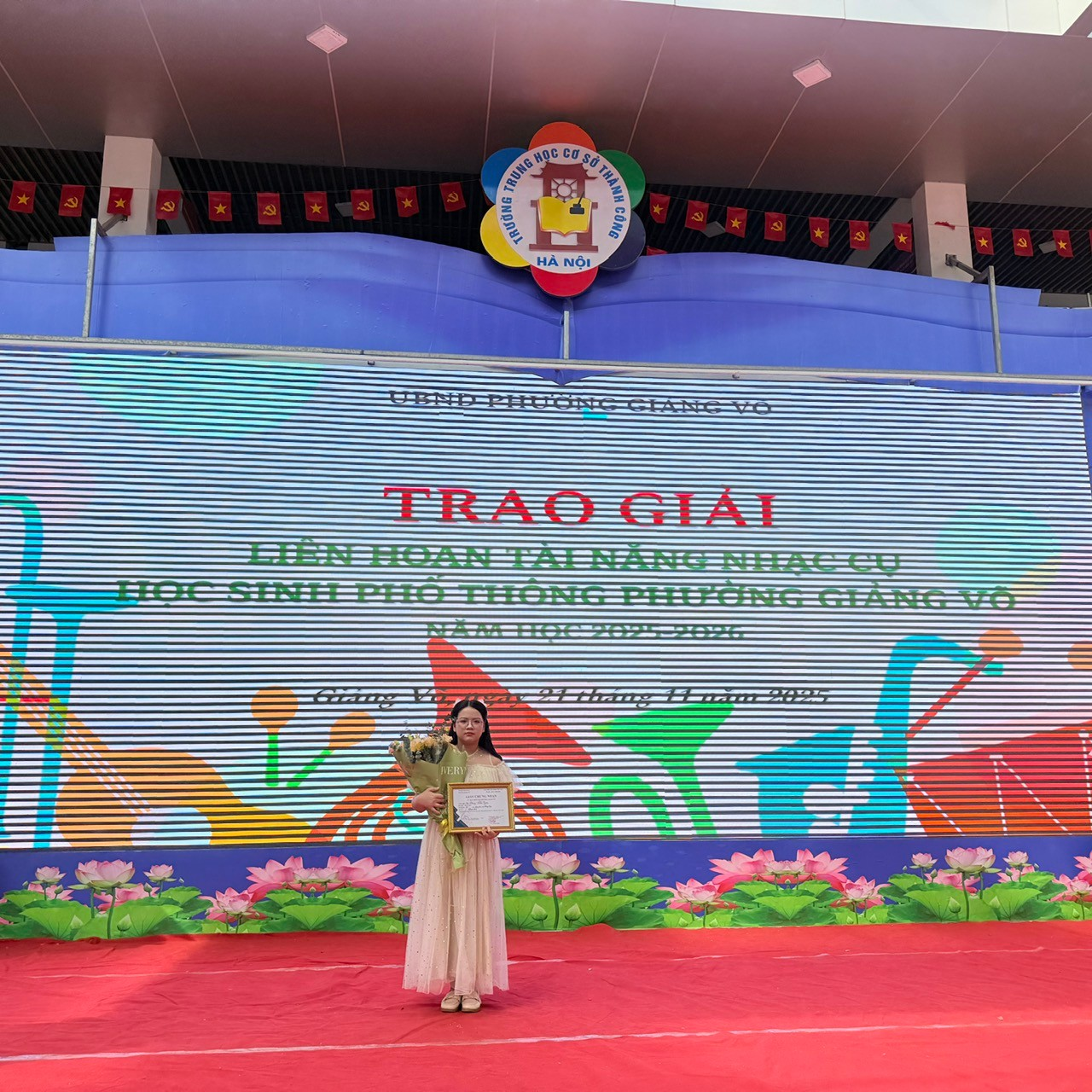 Sáng ngày 21/11/2025, vòng Chung khảo Liên hoan tài năng nhạc cụ dành cho lứa tuổi học sinh phổ thông được tổ chức tại Nhà thể chất trường THCS Thành Công. Trong không khí thi đua sôi nổi của cuộc thi, các học sinh của trường THCS Thăng Long đã ghi dấu ấn mạnh mẽ với tinh thần tự tin và khả năng biểu diễn nghệ thuật của mình. Nhà trường tự hào khi nhiều học sinh đã lọt vào vòng sơ loại và vòng chung khảo, thể hiện sự trưởng thành và đam mê của thế hệ học sinh Thăng Long.