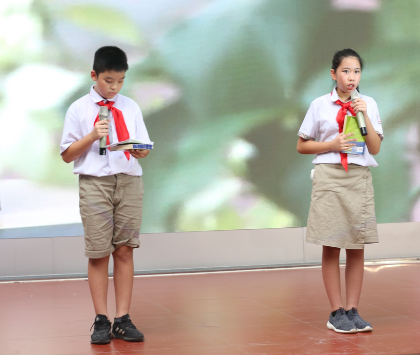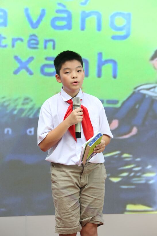 Lần đầu đứng trên sân khấu trước rất nhiều người, cảm xúc của em lạ lắm. Vừa run, vừa hồi hộp. Nhưng vượt qua nỗi sợ ban đầu, em đã tự tin giới thiệu cuốn sách mà mình yêu thích. Em cảm thấy thật sự hạnh phúc khi nhận được những tràng pháo tay ủng hộ của bạn bè và thầy cô. Từ giây phút đó em biết mình đã trưởng thành, có thể vượt qua những giới hạn của bản thân để đạt được ước mơ.