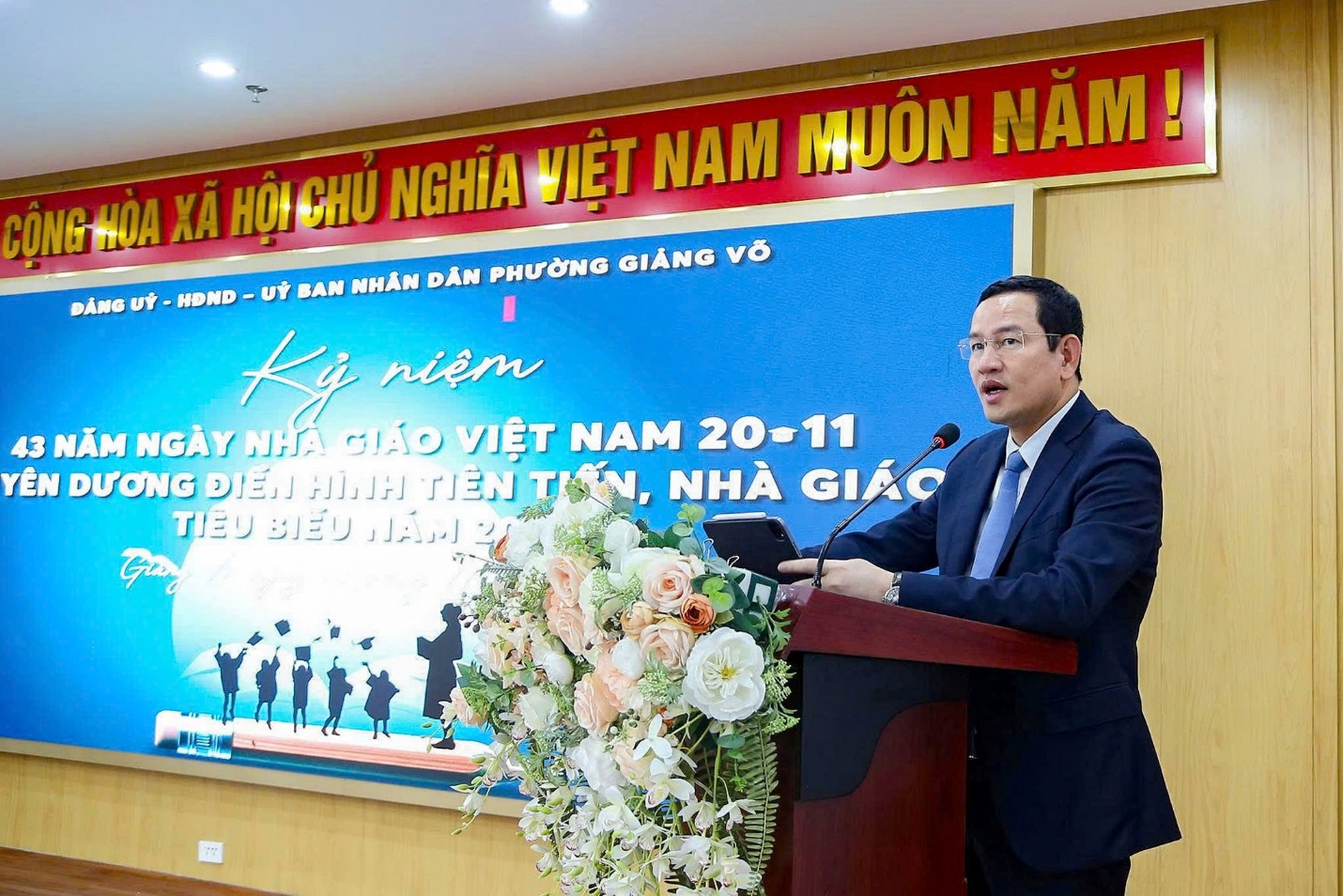 Sáng ngày 18/11, tại hội trường UBND phường Giảng Võ, Hội nghị tuyên dương các điển hình tiên tiến và nhà giáo tiêu biểu ngành Giáo dục – Đào tạo phường Giảng Võ năm 2025 được tổ chức nhân kỷ niệm 43 năm Ngày Nhà giáo Việt Nam (20/11/1982 – 20/11/2025). Đây là hoạt động nhằm biểu dương những nỗ lực, đóng góp của đội ngũ cán bộ quản lý, giáo viên và các đơn vị trường học trên địa bàn.