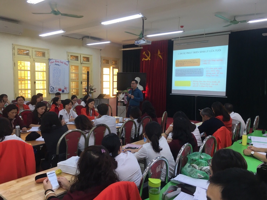 Trong buổi nói chuyện, giảng viên Trần Thành Nam đã trao đổi rất nhiệt tình và chân thành với giáo viên những kiến thức cơ bản về tâm sinh lý lứa tuổi của học sinh trung học cơ sở .Để từ đó Giáo viên và phụ huynh có được những biện pháp thiết thực giúp thấu hiểu, đồng hành và quản lý tốt hành vi của học sinh. Để từ đó có thể nâng cao chất lượng giảng dạy và giáo dục học sinh.