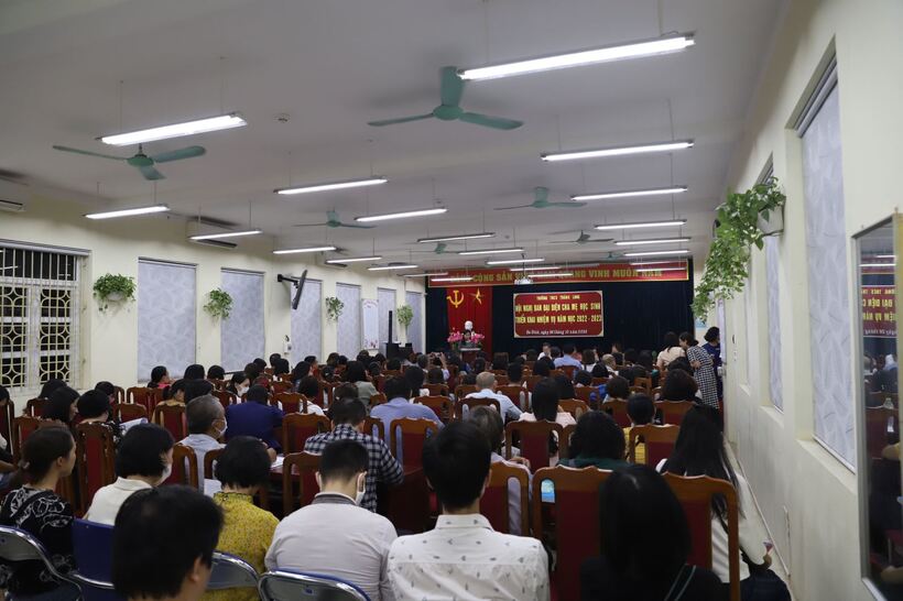 Tiếp theo, thay mặt cho toàn thể cha mẹ học sinh nhà trường, bà Phạm Thanh Huyền - Trưởng ban Đại diện cha mẹ học sinh đã gửi lời cảm ơn tới Ban giám hiệu, các thầy cô giáo cùng cán bộ, nhân viên nhà trường đã dành nhiều tâm huyết, công sức để chuẩn bị một năm học mới cho các con học sinh toàn trường với điều kiện tốt nhất. Bà Phạm Thanh Huyền cũng đã trình bày báo cáo tổng kết hoạt động của Ban phụ huynh trường năm học 2021- 2022 và dự thảo phương hướng hoạt động năm học 2022-2023. Cũng trong Hội nghị, Đại diện cha mẹ học sinh các lớp đã cùng nhau thảo luận, xây dựng, đóng góp ý kiến và đồng thuận, nhất trí, ủng hộ kế hoạch cũng như phương hướng hoạt động của Hội CMHS trong năm học này. Hội nghị cũng đã bầu bổ sung ba thành viên Ban đại diện CMHS trường từ các đại diện của khối 6.