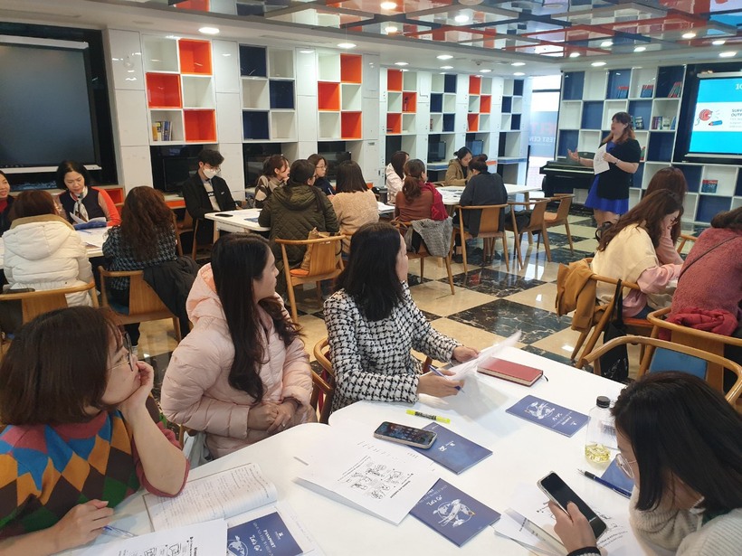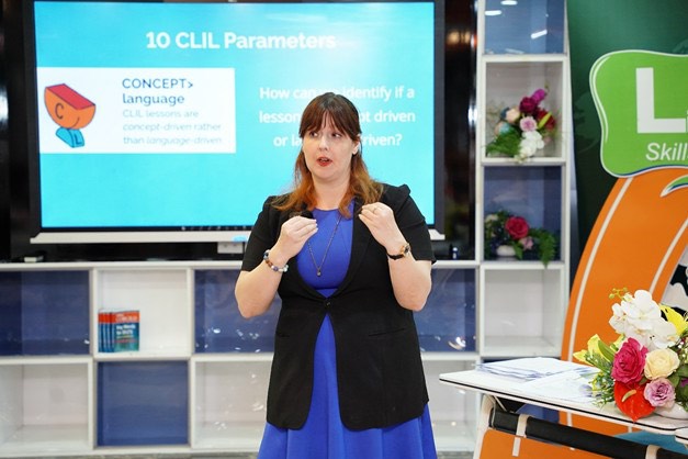 Tại khóa tập huấn, các giáo viên đã cùng cô Elizabeth Keyton, chuyên gia của công ty tìm hiểu và thảo luận về phương pháp CLIL