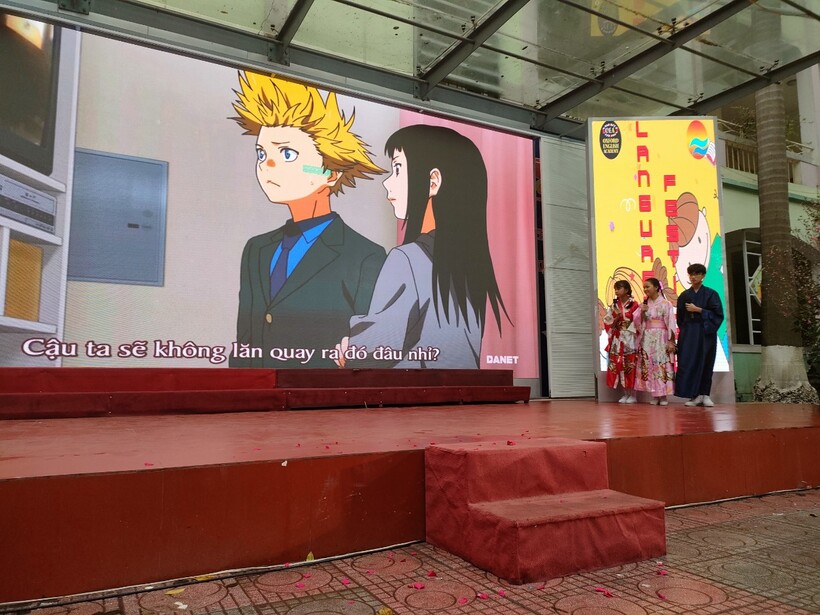 Vừa ra tết, không khí xuân vẫn ngập tràn mỗi con phố Hà Nội, hoa đào vẫn rực rỡ và quất vẫn tươi thắm trên cành… thì trường tôi đã tổ chức Festival ngôn ngữ giống như một lễ hội lớn. Mỗi lớp có thể tham gia các hoạt động như lồng tiếng phim, văn nghệ và thuyết trình… bằng các ngôn ngữ. Lớp tôi đã tham gia hai hoạt động đó chính là lồng tiếng phim và hát đồng ca. Lồng tiếng phim được nhóm bạn Khánh Toàn đảm nhận gồm Quế Nhi, Ngọc Minh, Mỹ Tâm, Quốc Khánh, Đức Kiên và Khánh Toàn. Các bạn Lồng tiếng phim Nhật Bản “ Lời nói dối tháng tư” với nội dung vô cùng tinh tế và nhân văn. Về bài hát đồng ca, trong thời điểm gấp rút, nhờ bạn Ngọc Minh cất công tìm một bài hát thật ý nghĩa mà lớp chúng tôi đã có một màn biểu diễn thật tuyệt vời với bài hát theo phong cách hợp xướng “ Ponyo on the cliff by the sea”.