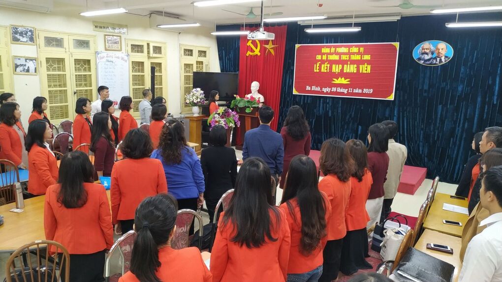 Trong không khí phấn khởi chuẩn bị chào mừng ngày thành lập Đảng Cộng sản Việt Nam (3/2) và chuẩn bị cho Đại hội Chi bộ sắp diễn ra , chiều ngày 28/11/2019, chi bộ trường THCS Thăng Long thuộc Đảng bộ phường Cống Vị đã tổ chức kết nạp cho quần chúng ưu tú Nguyễn Thị Thắm.