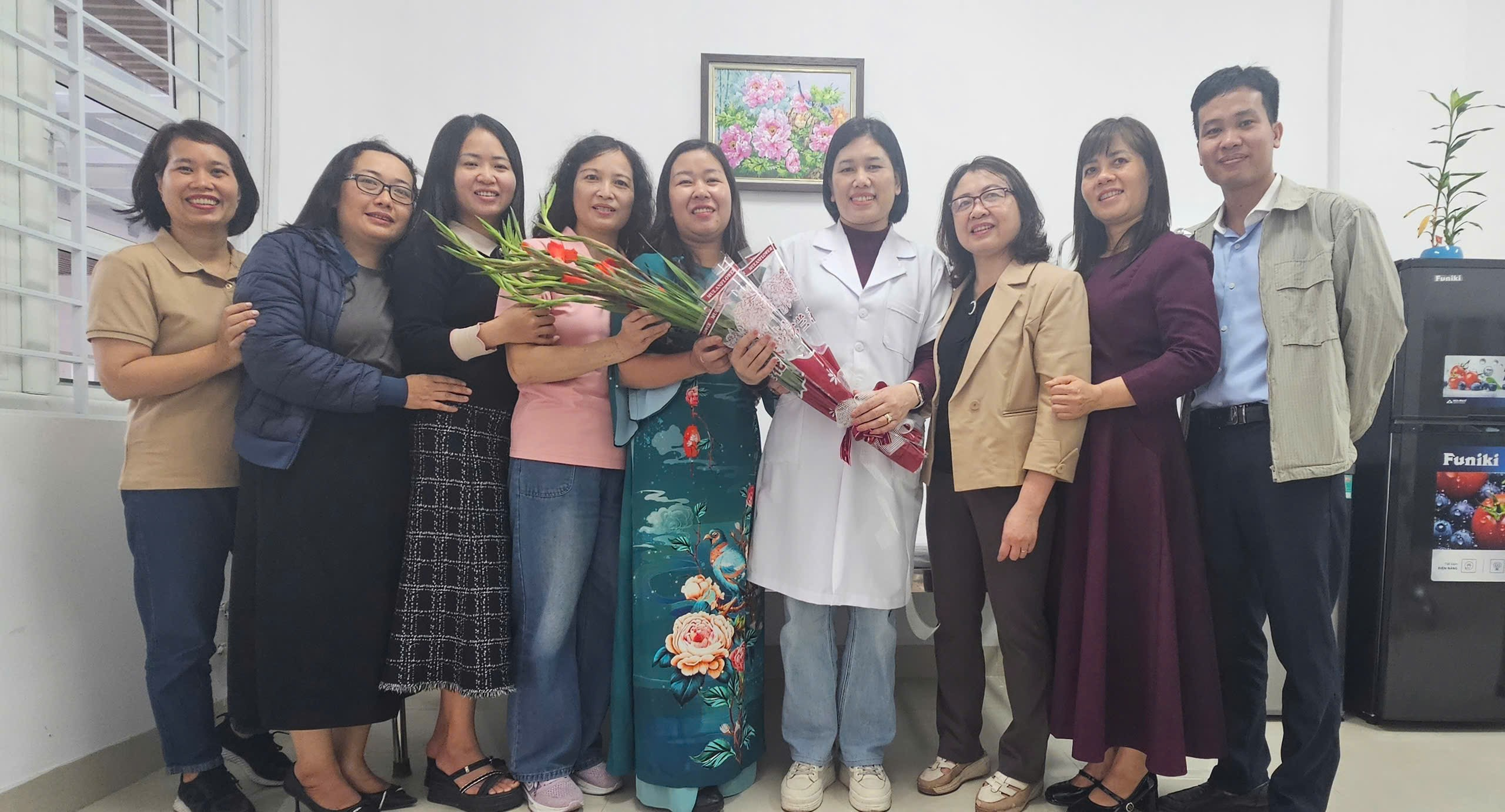 Các thầy cô chúc mừng cán bộ y tế nhà trường nhân ngày Thầy thuốc Việt Nam 27/2