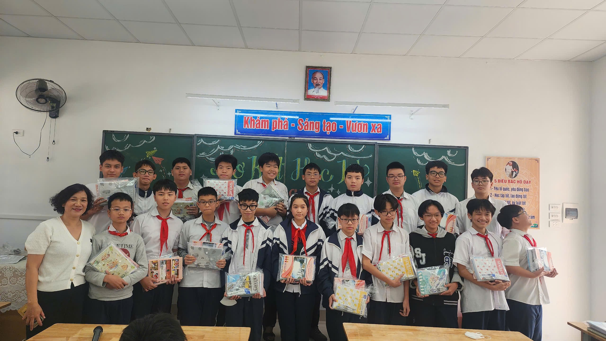 Để kịp thời động viên và khích lệ tinh thần học tập của học sinh, Ban phụ huynh lớp phối hợp cùng cô giáo chủ nhiệm đã trao tặng những phần thưởng nhỏ nhưng chan chứa yêu thương cho các học sinh có điểm thi cao và những học sinh chưa đạt danh hiệu học sinh giỏi nhưng có sự tiến bộ vượt bậc trong học tập. Tiêu biểu là các em: Trần Gia Huy, Nguyễn Huy Đạt, Nguyễn Hương Liên, Lương Nguyễn Minh Vy, Doãn Hoàng Giang… Những chiếc bút, cuốn vở, tập giấy kiểm tra giản dị ấy đã trở thành nguồn động viên thân thương, tiếp thêm hứng thú học tập và niềm tin cho các em trên hành trình chinh phục tri thức.