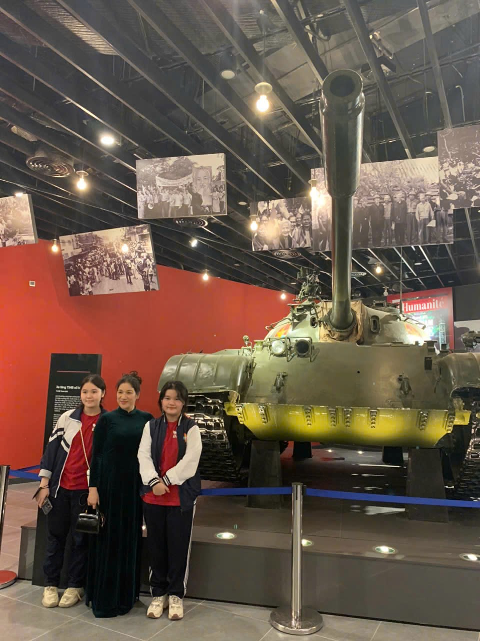 Ngay từ khi bước lên xe, không khí lớp đã rất sôi động và tràn đầy tiếng cười. Tất cả chúng em đều háo hức và mong đợi được khám phá những điều mới mẻ tại bảo tàng. Đến nơi, khung cảnh trang nghiêm của bảo tàng khiến em ấn tượng ngay lập tức. Bảo tàng Lịch sử Quân sự Việt Nam nằm trên con phố yên tĩnh nhưng chứa đựng trong đó cả một kho tàng lịch sử, với hàng nghìn hiện vật quý giá kể lại câu chuyện về những cuộc đấu tranh giành độc lập tự do của dân tộc Việt Nam qua các thời kỳ.