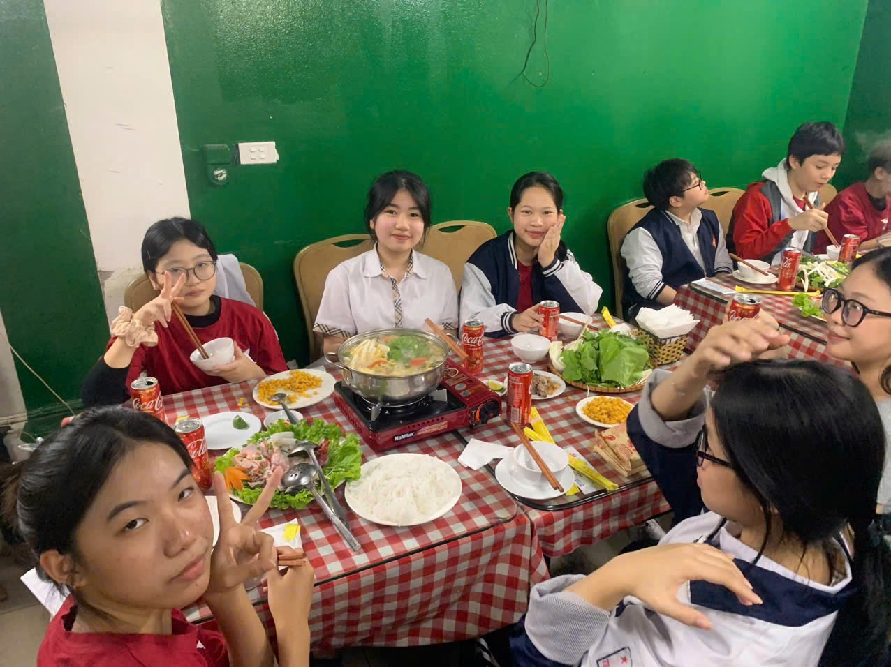 Sau khi tham quan, chúng em lên xe trở về và tiếp tục tham gia buổi liên hoan sơ kết học kỳ tại nhà hàng Quang Huy. Không khí buổi liên hoan rất vui vẻ và ấm cúng. Đây là dịp để cả lớp cùng nhìn lại những cố gắng trong học kỳ vừa qua và chào đón một năm mới với nhiều thành công hơn nữa. Buổi liên hoan không chỉ là phần thưởng cho chúng em sau những nỗ lực học tập mà còn là cơ hội để gắn kết tình bạn, tình thầy trò.