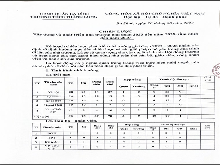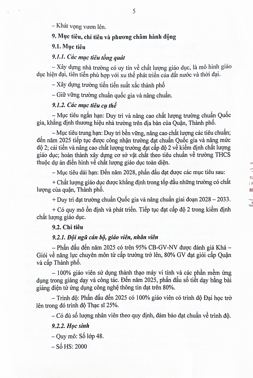 Chiến lược xây dựng và phát triển nhà trường giai đoạn 2023 đến năm 2028, tầm nhìn đến năm 2030