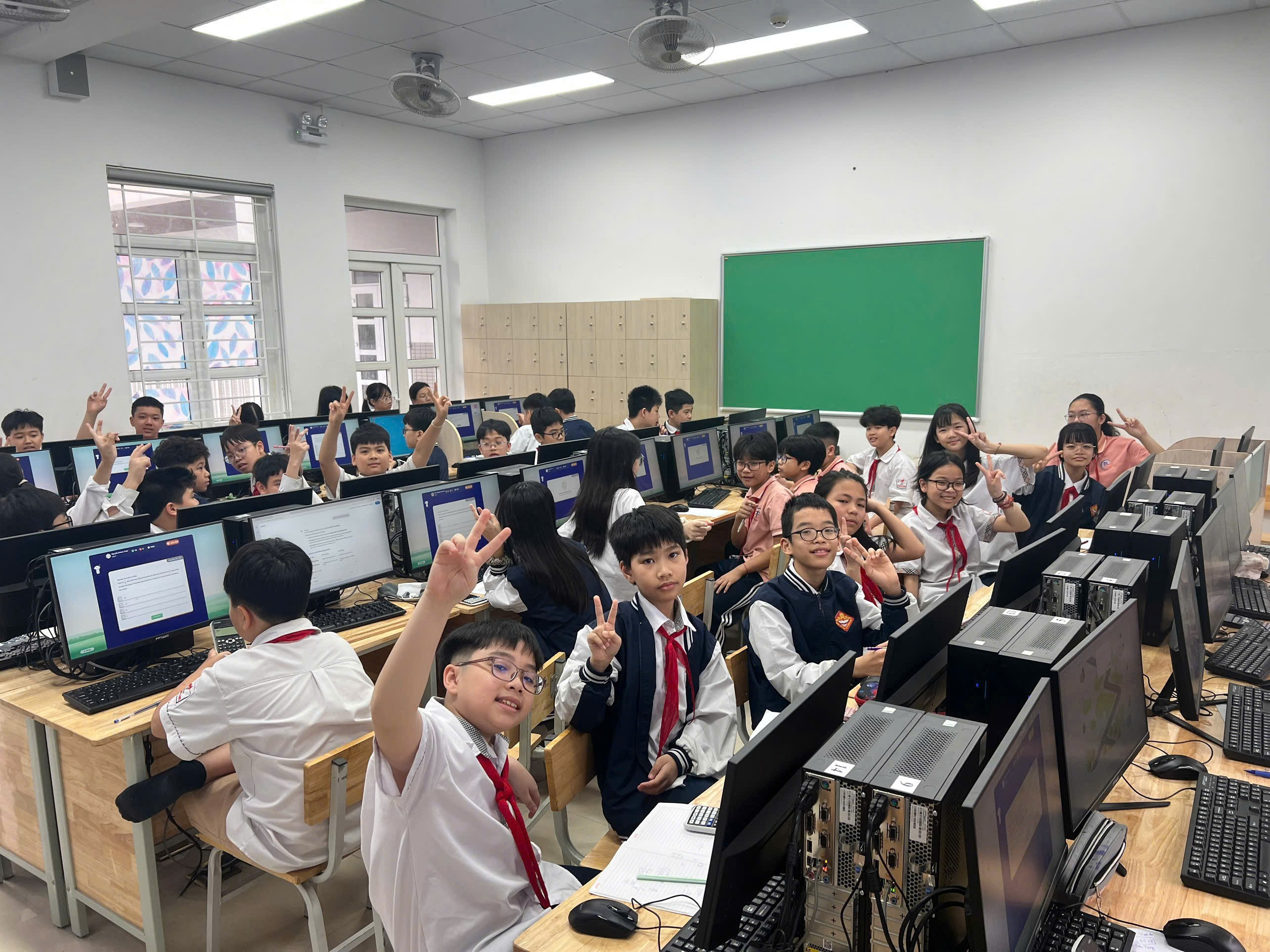 Hình ảnh các em học sinh chăm chú trước màn hình, cùng những nụ cười rạng rỡ sau khi hoàn thành bài thi đã tạo nên một bức tranh đẹp về tinh thần học tập tích cực và niềm đam mê Toán học. Đây không chỉ là một sân chơi trí tuệ mà còn là cơ hội để học sinh giao lưu, học hỏi và phát triển năng lực bản thân.
