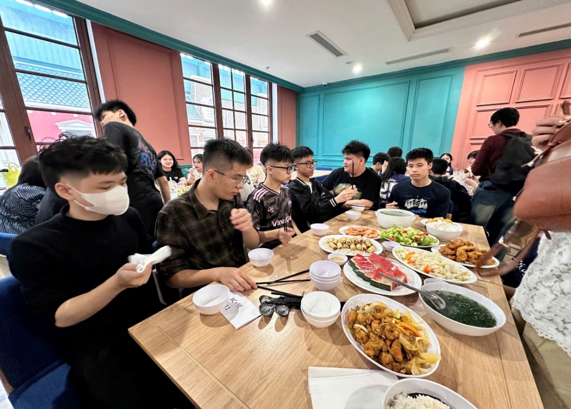 Sau khi khám phá những loài động vật vô cùng xinh đẹp và sặc sỡ , chúng tôi tập trung di chuyển đi ăn trưa . Mọi người đều tận hưởng bữa ăn rất ngon miệng vì không còn nhiều dịp được quây quần ở bên cạnh nhau thưởng thức bữa ăn như vậy nữa . Đã nghỉ xả hơi đủ , mọi người lại lên đường tới các khu trải nghiệm mới .