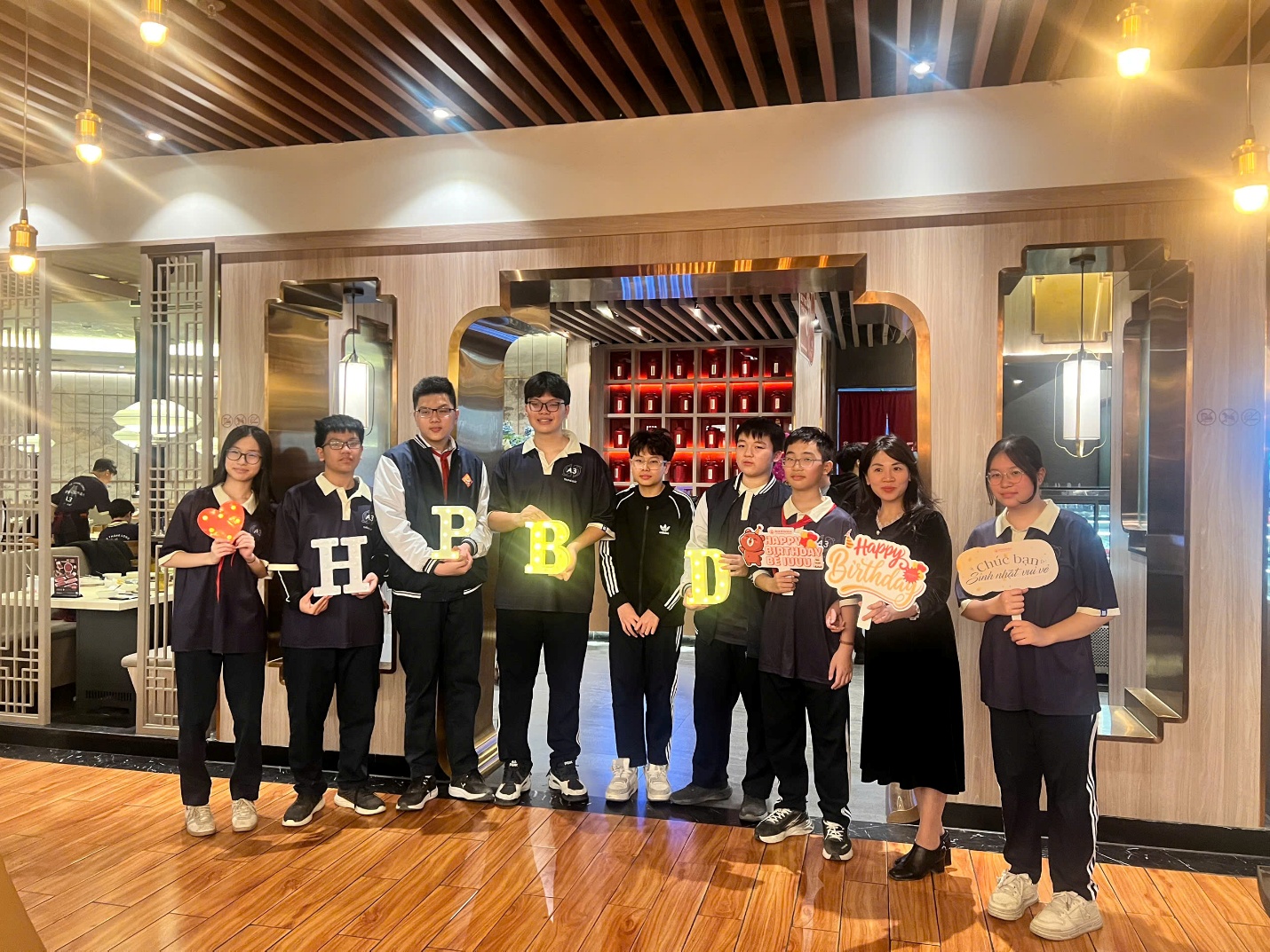 Sau phần tổng kết là khoảng thời gian liên hoan đầy ấm áp. Cả lớp cùng chúc mừng sinh nhật các bạn có ngày sinh trong tháng 11, 12 và tháng 1. Tiếng cười rộn ràng và những lời chúc giản dị mà chân thành khiến không gian lớp học như một gia đình thật sự- luôn quan tâm, chia sẻ và dành những tình yêu thương ấm áp nhất cho nhau. Buổi liên hoan không chỉ là niềm vui sau những ngày học tập căng thẳng, mà chúng còn là sợi dây gắn kết chúng tôi gần nhau hơn, để mỗi kỉ niệm tuổi học trò trở nên trọn vẹn và đáng nhớ.