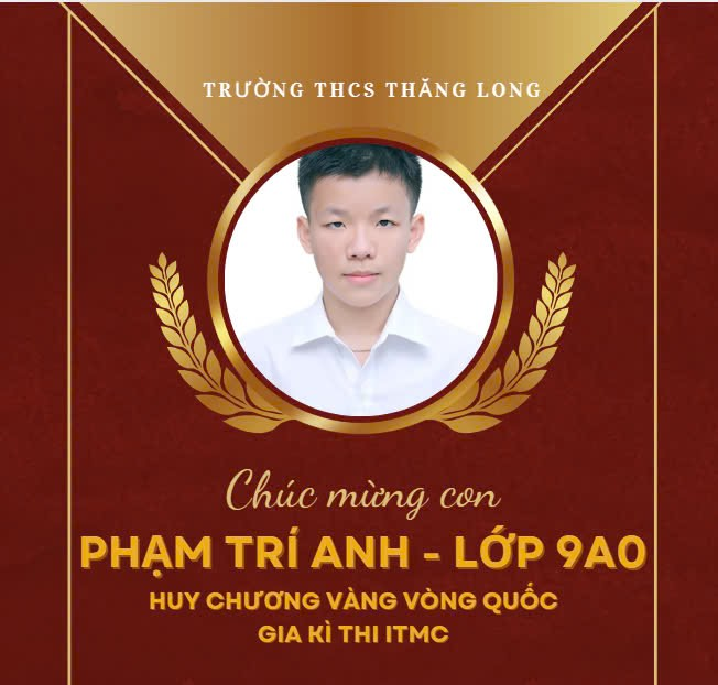 Ngày 15 tháng 12 năm 2024, kỳ thi ITMC 2025 đã khép lại thành công với nhiều cảm xúc, để lại ấn tượng tốt cho các thí sinh, các bậc phụ huynh và các nhà trường. Đoàn thí sinh trường THCS Thăng Long đã ra quân với khí thế sôi nổi, tự tin và đạt 20 huy chương, trong đó có 3 huy chương vàng (top 8% thí sinh tham dự).