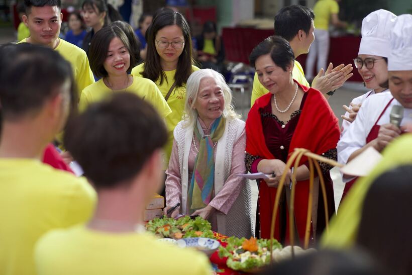 Đội 1 chụp ảnh bên tác phẩm dự thi phần thi nấu ăn