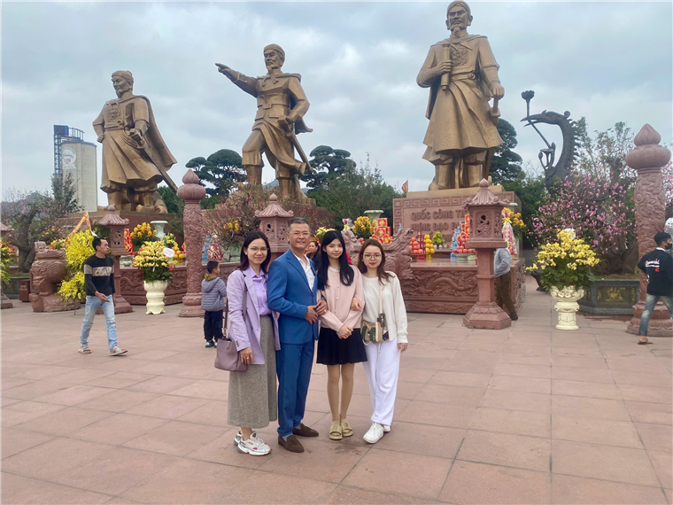 Gia đình chúng tôi cùng nhau thắp hương và thành tâm cầu mong cho một năm mới thật bình an, hạnh phúc. Tiếng chuông của ngôi chùa ngân vang, hòa quyện với làn khói trầm hương dịu nhẹ bay thoang thoảng trong không khí, tạo nên một khung cảnh thanh tịnh và bình yên đến lạ. Chùa Bạch Đằng Giang không chỉ là một nơi tâm linh và trang nghiêm mà đây còn là một nơi lưu giữ lại những dấu ấn lịch sử quan trọng và hào hùng của dân tộc ta thời xưa. Em được nghe bố mẹ kể về những chiến công lừng lẫy trên dòng sông Bạch Đằng, nơi quân dân ta dưới sự chỉ huy của Ngô Quyền, Lê Đại Hành và Trần Hưng Đạo đã đánh tan quân xâm lược. Những pho tượng lớn của ba vị anh hùng được đặt trang trọng trong khuôn viên chùa, thể hiện lòng biết ơn sâu sắc của thế hệ đi sau đối với những người đã đổ máu, hy sinh vì Tổ quốc.