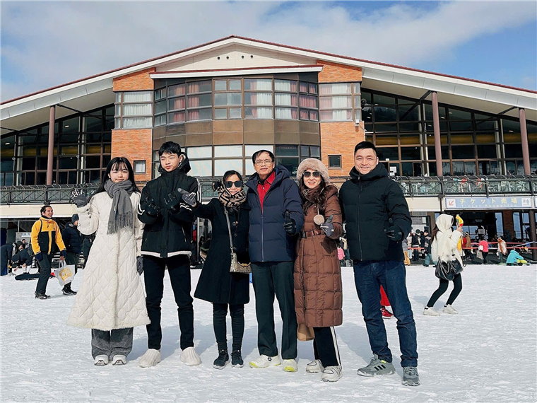 (Gia đình em cùng tham gia trải nghiệm trượt tuyết)