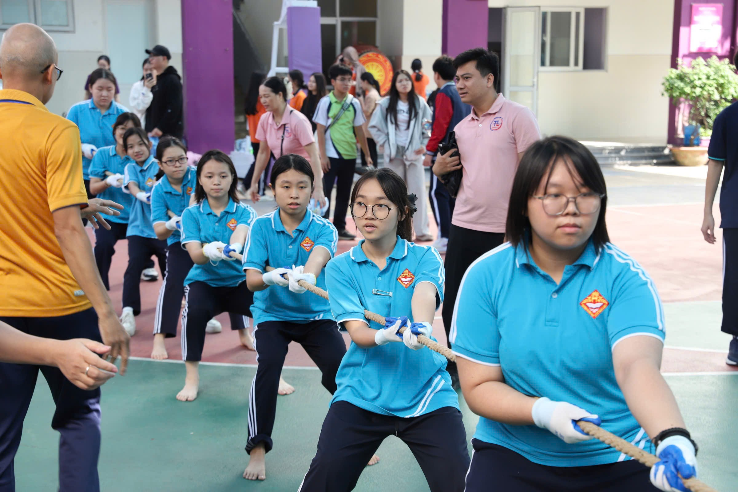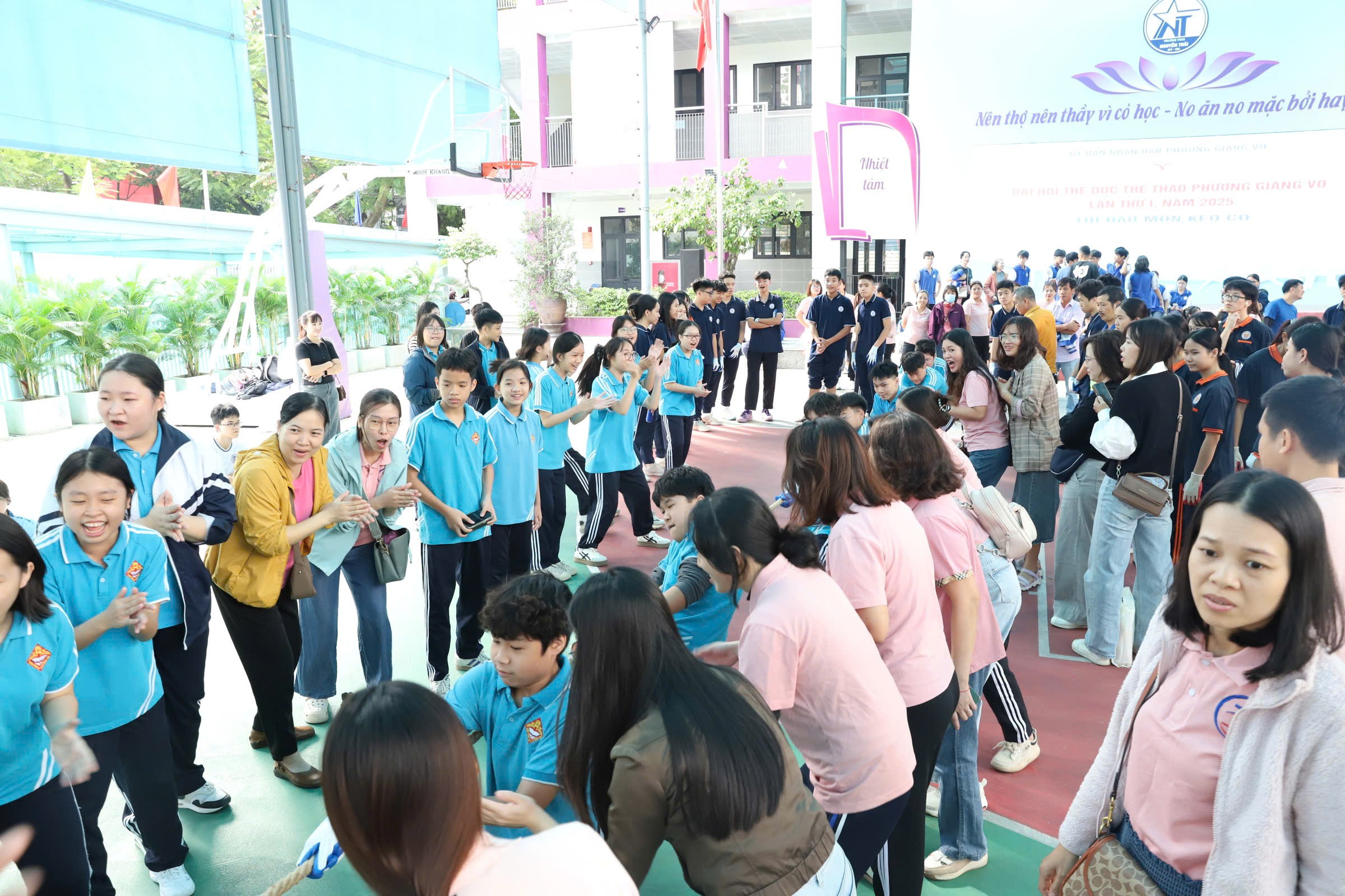 Không chỉ có các vận động viên trực tiếp thi đấu, đông đảo giáo viên, nhân viên của trường cũng đã có mặt để cổ vũ, tiếp sức tinh thần cho đồng nghiệp. Những tràng pháo tay giòn giã, những tiếng hô vang cổ vũ đã tiếp thêm sức mạnh, tạo nên bầu không khí thi đua sôi nổi, hào hứng và đầy ắp tinh thần đoàn kết.