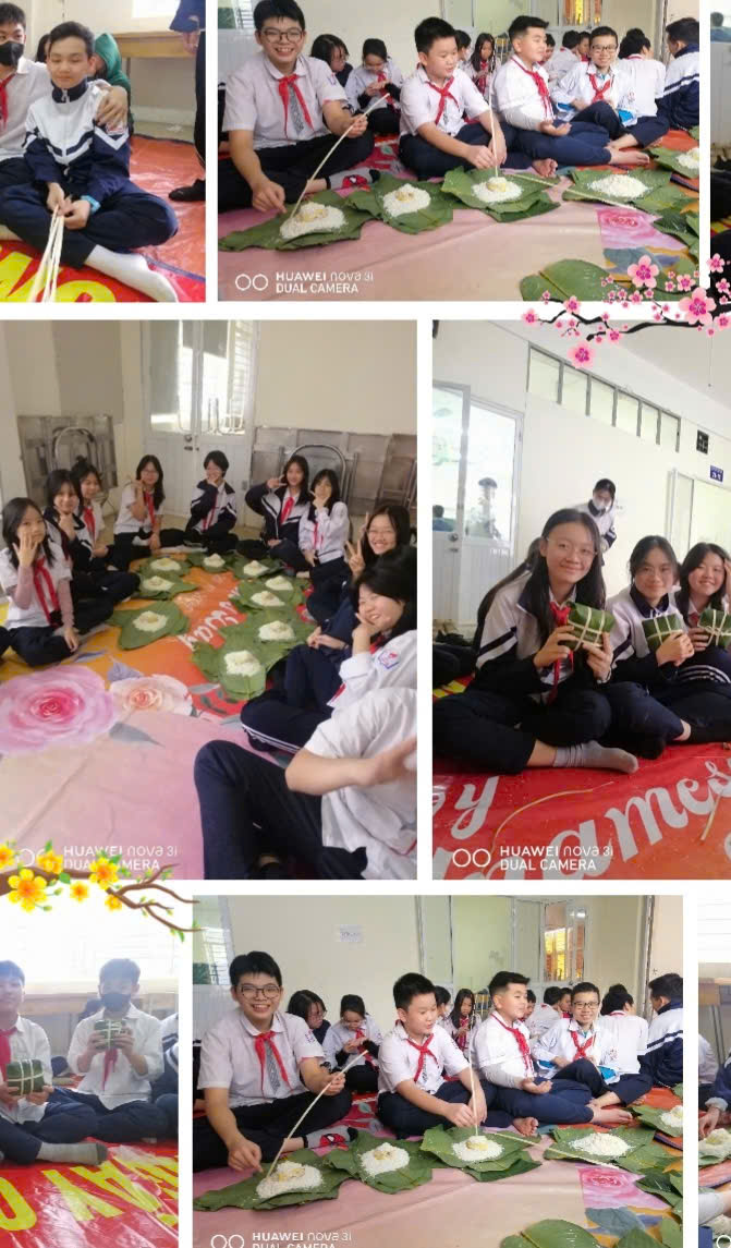 Háo hức tham gia hội thi gói bánh chưng của tập thể lớp 7C - THCS - Thăng Long