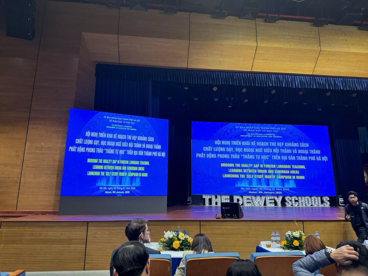 Sáng ngày 9/1/2025, tại hội trường Trường THCS và THPT Dewey (khu đô thị Star Lake, Tây Hồ Tây, Bắc Từ Liêm, Hà Nội), Phòng Giáo dục và Đào tạo (GD&ĐT) quận Ba Đình sẽ tổ chức Hội nghị triển khai kế hoạch thu hẹp khoảng cách chất lượng dạy và học ngoại ngữ giữa nội thành và ngoại thành. Hội nghị còn kết hợp phát động phong trào “Tháng tự học ngoại ngữ” trên địa bàn toàn thành phố.
