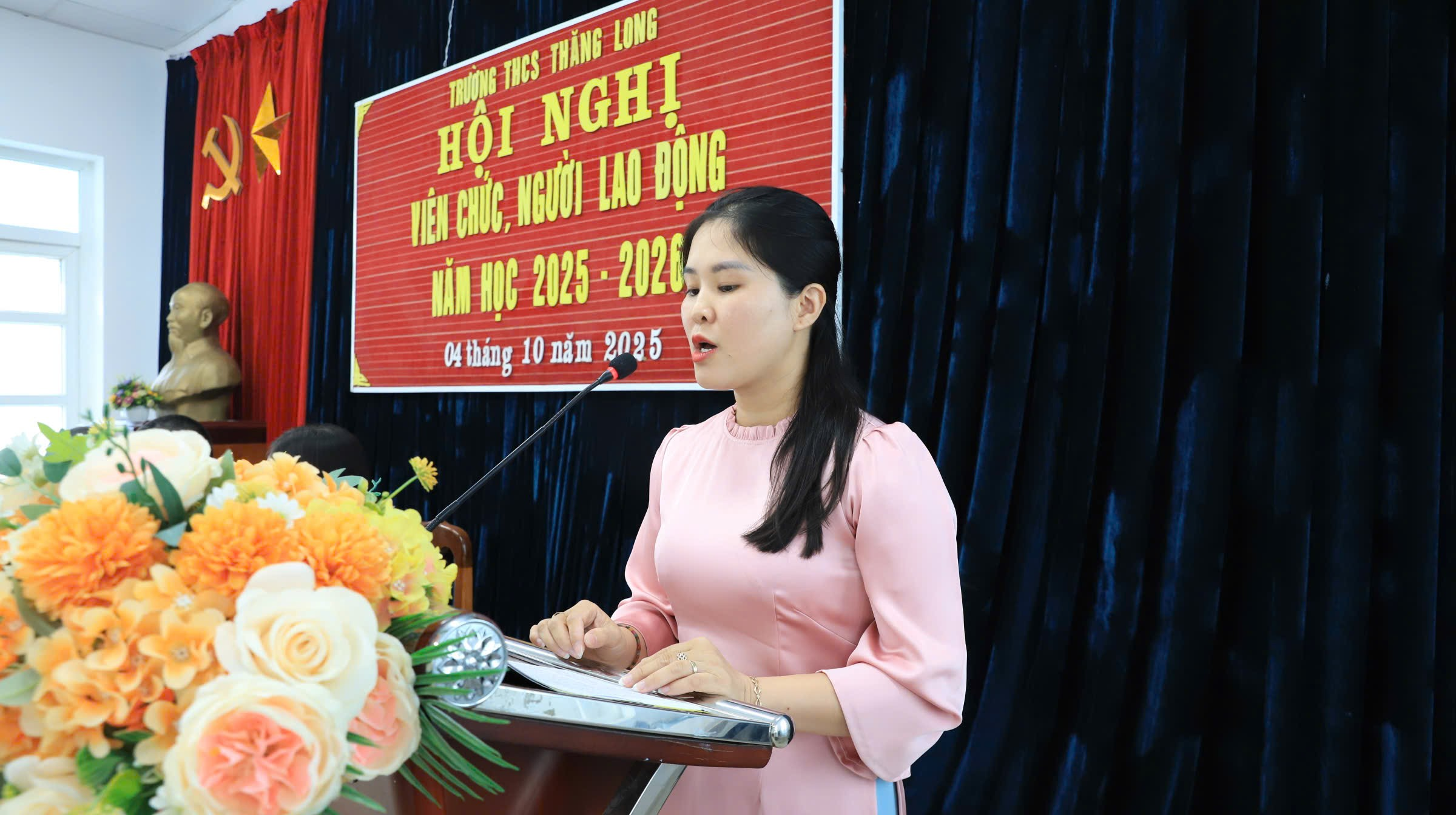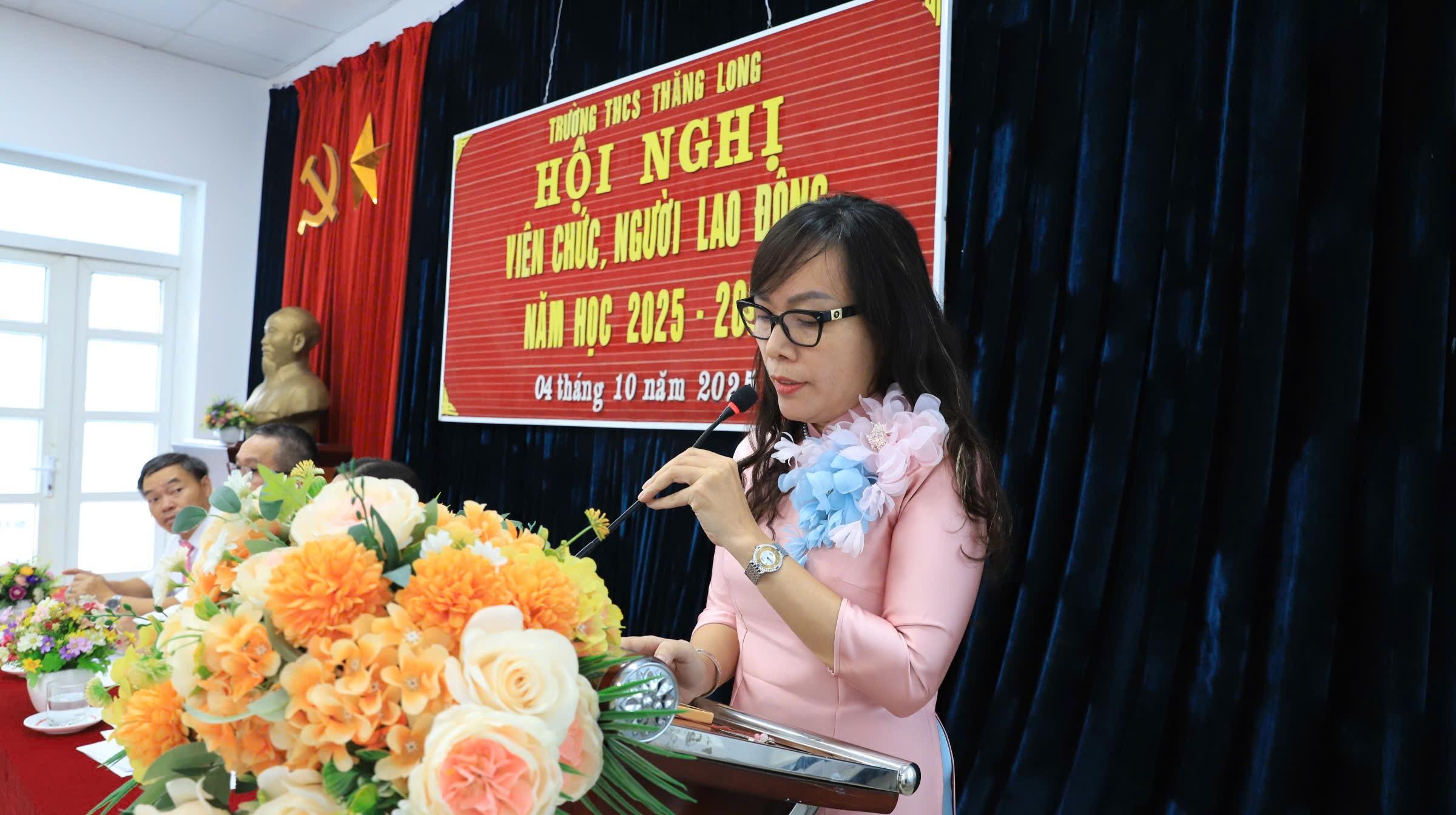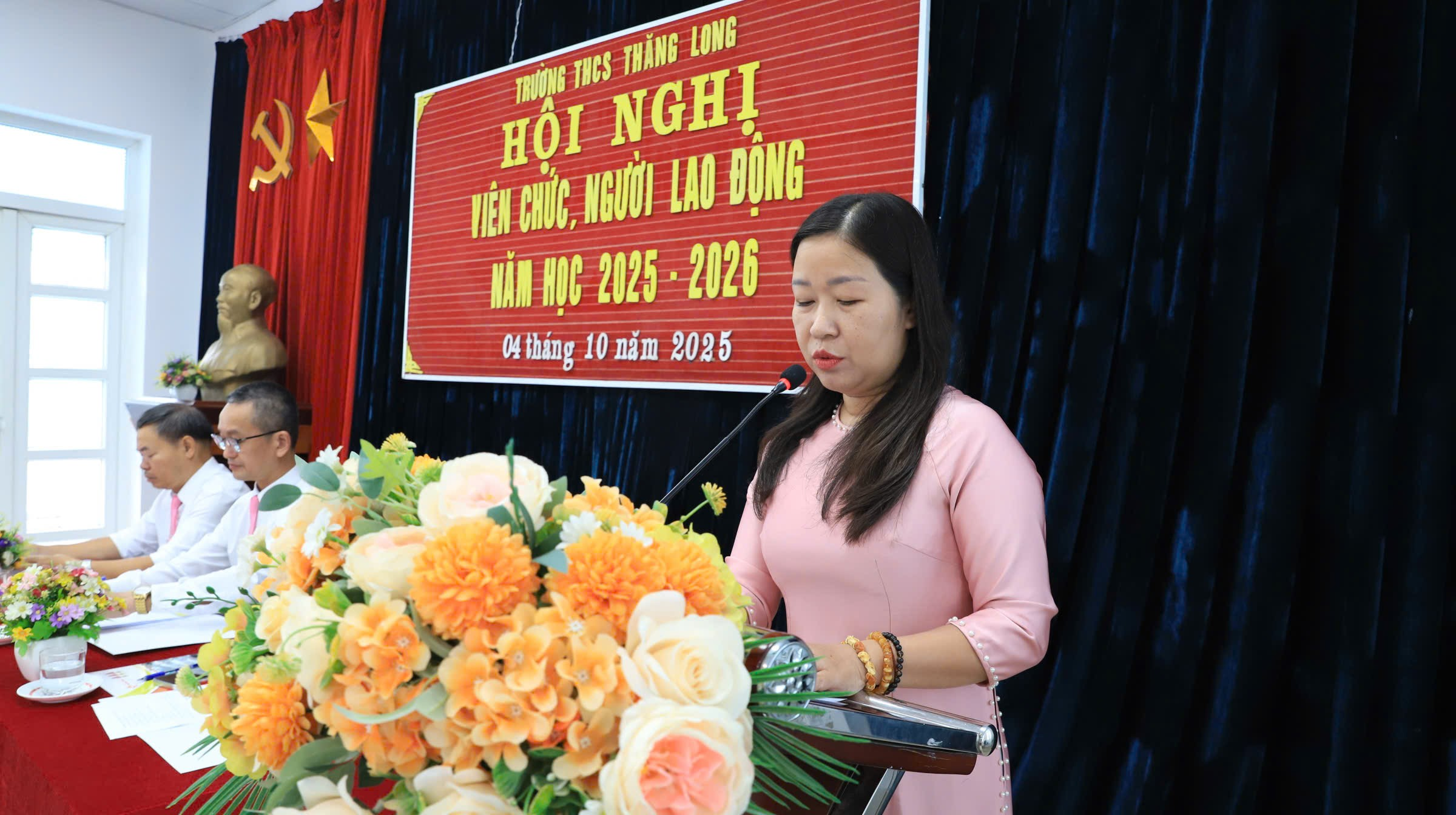 Hội nghị viên chức- người lao động năm học 2025- 2026 của trường THCS Thăng Long đã khép lại trong không khí đoàn kết, dân chủ, trách nhiệm và sự đồng thuận nhất trí cao từ tập thể cán bộ, giáo viên, nhân viên nhà trường. Với tinh thần đoàn kết, quyết tâm không ngừng nâng cao chất lượng dạy và học, tập thể cán bộ - giáo viên – nhân viên nhà trường quyết tâm thực hiện xuất sắc nhiệm vụ năm học 2025 – 2026 góp phần xây dựng một ngôi trường chất lượng- hiện đại- thân thiện, nơi chắp cánh ước mơ cho các thế hệ học sinh.