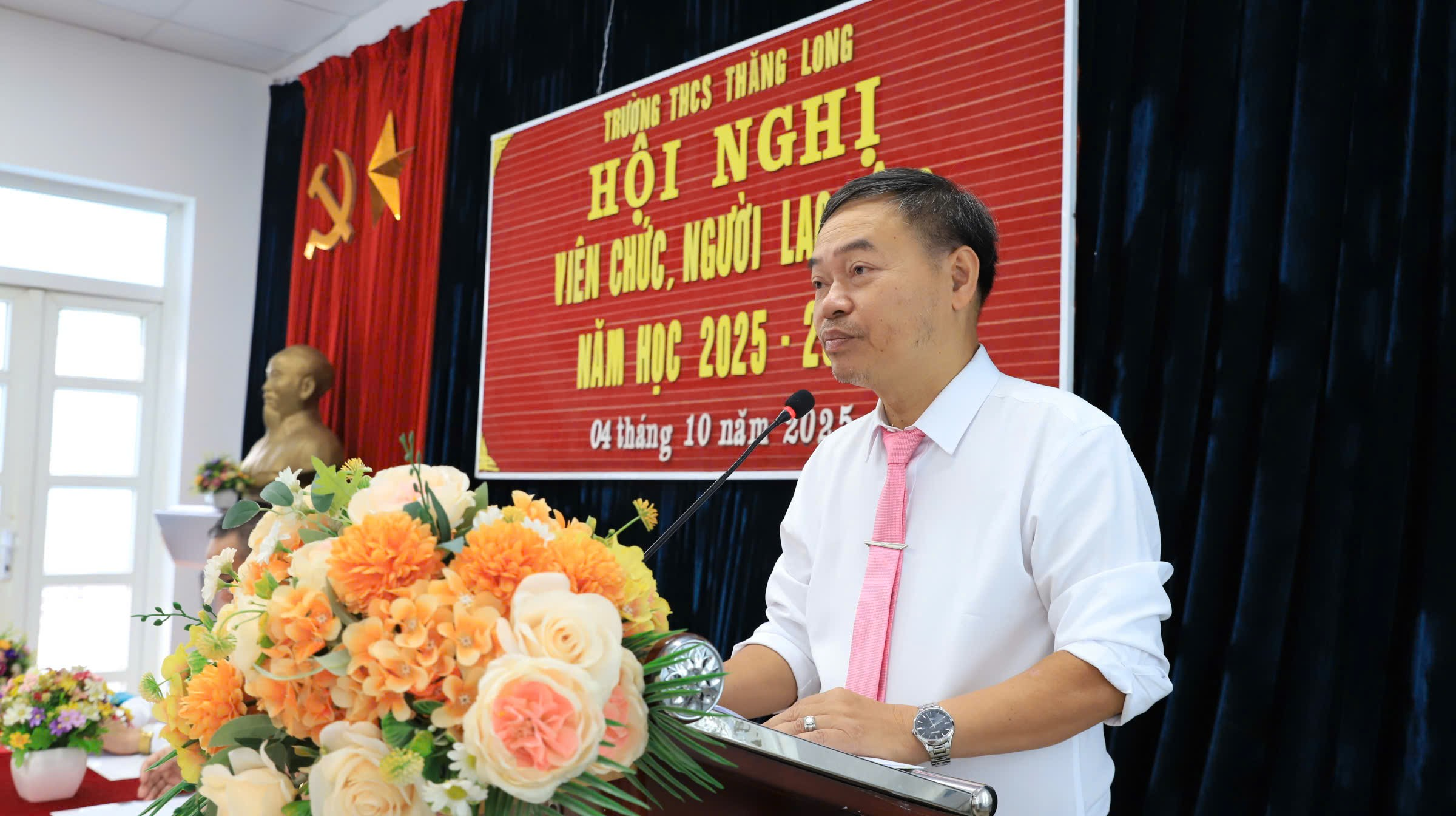 Sáng ngày 04 tháng 10 năm 2025, trường THCS Thăng Long long trọng tổ chức Hội nghị viên chức, người lao động năm học 2025 - 2026. Đây là sự kiện thường niên nhằm đánh giá kết quả hoạt động của nhà trường trong năm học 2024- 2025, đồng thời đề ra phương hướng, nhiệm vụ trọng tâm cho năm học mới. Tham dự hội nghị có đồng chí Nguyễn Như Tùng- Phó Trưởng Phòng Văn hoá và xã hội phường Giảng Võ và toàn thể giáo viên, công nhân viên nhà trường.