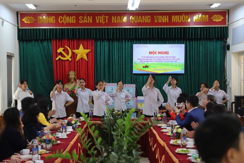 Hội nghị ký kết Biên bản ghi nhớ kết thúc trong không khí rộn ràng, sôi động của các tiết mục văn nghệ chào mừng đến từ các em học sinh trường THCS Phú Đông. Cũng vừa lúc trời hửng nắng. Nắng của trời, nắng trong ánh mắt lấp lánh của trò báo hiệu thành công của một phong trào nhiều ý nghĩa, mang những giá trị sống thật đẹp!