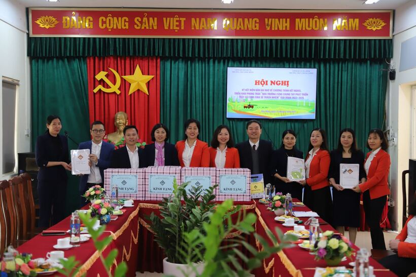 đã tổ chức hội nghị ký kết biên bản ghi nhớ về chương trình kết nghĩa, triển khai phong trào “Nhà trường cùng chung tay phát triển -Thầy cô cùng sẻ chia trách nhiệm” giai đoạn 2023 – 2025”. Sau quãng đường gần 70km, trong mưa bay cuối xuân còn vương chút hơi lạnh, đoàn giáo viên đại diện trường THCS Thăng Long đặt chân đến trường bạn trong sự tiếp đón nồng hậu bằng những nụ cười thân thiện, những cái bắt tay ấm áp.