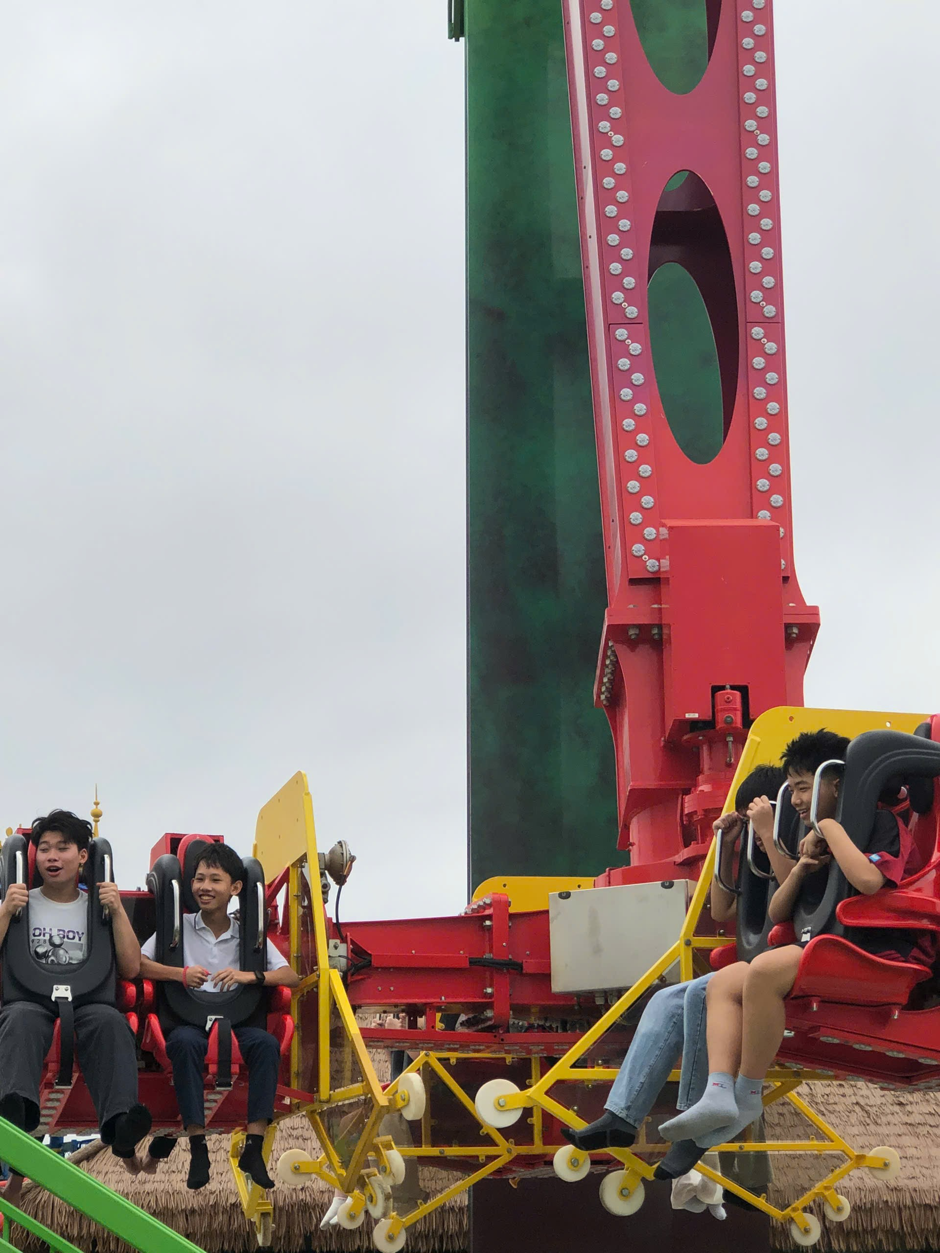 Điểm nhấn đáng nhớ nhất trong hành trình chính là một trò chơi cảm giác mạnh – nơi mà ngay từ cái nhìn đầu tiên đã khiến tim tôi khẽ chùng xuống. Những chiếc ghế liên tục được nâng cao, xoay tròn và đảo chiều với tốc độ chóng mặt, khiến người xem phía dưới cũng không khỏi hồi hộp.