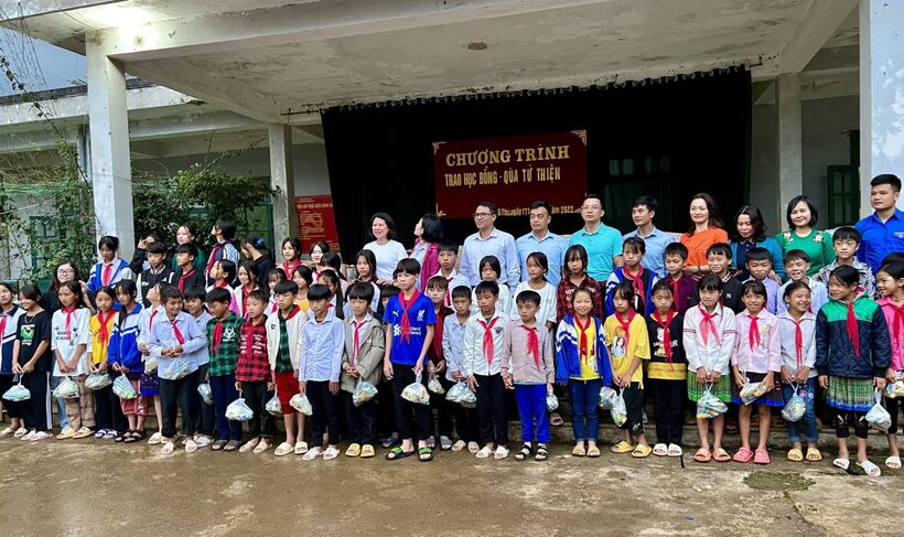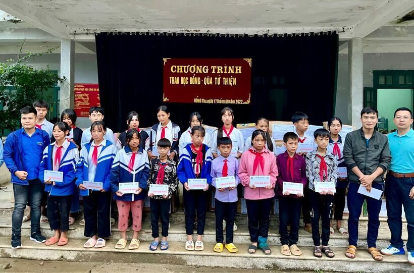 Hành trình của đoàn chúng tôi vượt qua biết bao nhiêu đường đất quanh co, núi cao vực sâu, đèo dốc, thời tiết lúc nắng lúc mưa, những sạt lở núi đồi. Rồi mệt mỏi như tan biến khi đến được điểm đến đầu tiên, ngôi trường THCS Hồng Thu, huyện Sìn Hồ, tỉnh Lai Châu. Dù lúc này đã về chiều muộn, trời sắp tối nhưng thật sự là xúc động khi nhìn vào sân trường: Các con học sinh và thầy cô giáo ở nơi đây vẫn chờ đợi đoàn. Bù đắp cho những chờ đợi ấy, cả đoàn chúng tôi ùa xuống, mừng vui, tay bắt mặt mừng ríu rít chào hỏi các bạn học sinh và các thầy cô giáo nơi đây. Những món quà chuyển xuống nhanh chóng, sắp xếp ngay ngắn trên sân khấu và lần lượt trao tận tay các bạn học sinh trong niềm xúc động rưng rưng và niềm vui hạnh phúc của cả người trao, người nhận. Những món quà nhỏ bé nhưng đầy ý nghĩa, từ các bạn học sinh của các trường thuộc Quận Ba Đình, Cầu Giấy và Hoàn Kiếm được gửi đến các bạn học sinh vùng cao Tây Bắc xa xôi.