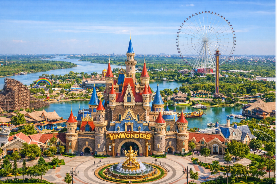 Công viên Vin Wonder Vũ Yên là một công trình nằm trong khu đô thị Vinhomes Royal Island trên quần đảo Vũ Yên, Hải Phòng – khu đô thị sang trọng đẳng cấp quốc tế. Khi nhìn thấy những căn biệt thự tuyệt đẹp kề mặt biển xanh biếc với cát trắng, em đã không khỏi háo hức và nôn nóng trong lòng. Cuối cùng, sau hai tiếng rưỡi lái xe, lớp em đã đến nơi, và em đã choáng ngợp trước khung cảnh tráng lệ và tuyệt đẹp ở công viên với cổng chào là những tòa lâu đài lộng lẫy đến rực rỡ. Sau khi qua cổng soát vé, trong cổng chào là nhữn nhà hàng và quán ăn vặt trải dài. Ngay sau cổng chào là đài phun nước trung tâm, từ đây có thể hướng ra các khu vực trải nghiệm và vui chơi như khu trò chơi mạo hiểm, trò chơi điện tử, nhà chim, vườn thú safari,...