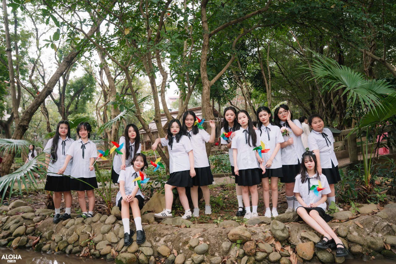 Trong bộ đồng phục quen thuộc, chúng tôi đứng giữa nhà rông, nhà sàn, những hàng cây xanh đậm chất làng quê Việt. Không cần quá nhiều đạo cụ hay màu sắc cầu kỳ, chính nụ cười trong trẻo của tuổi 14 hòa cùng không gian văn hóa truyền thống đã tạo nên một dấu ấn rất riêng cho 9A5. Cuốn kỉ yếu lúc ấy không chỉ là ảnh chụp, mà là câu chuyện về một tập thể biết nhìn về quá khứ để bước tới tương lai.