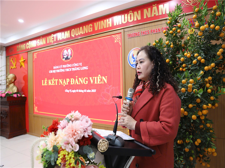 Phát biểu tại buổi lễ kết nạp đảng viên mới, đồng chí Vũ Thanh Hà, Bí thư Đảng ủy phường Cống Vị thay mặt cho các đồng chí lãnh đạo phường đã phát biểu, nhấn mạnh vai trò của Đảng viên mới trong sự phát triển chung của nhà trường và Chi bộ. Đồng thời đồng chí Vũ Thanh Hà cũng có những lời nhắn nhủ với tất cả đảng viên và Chi bộ nhà trường trong việc phát triển đảng viên để luôn xứng đáng là Chi bộ đảng vững mạnh.