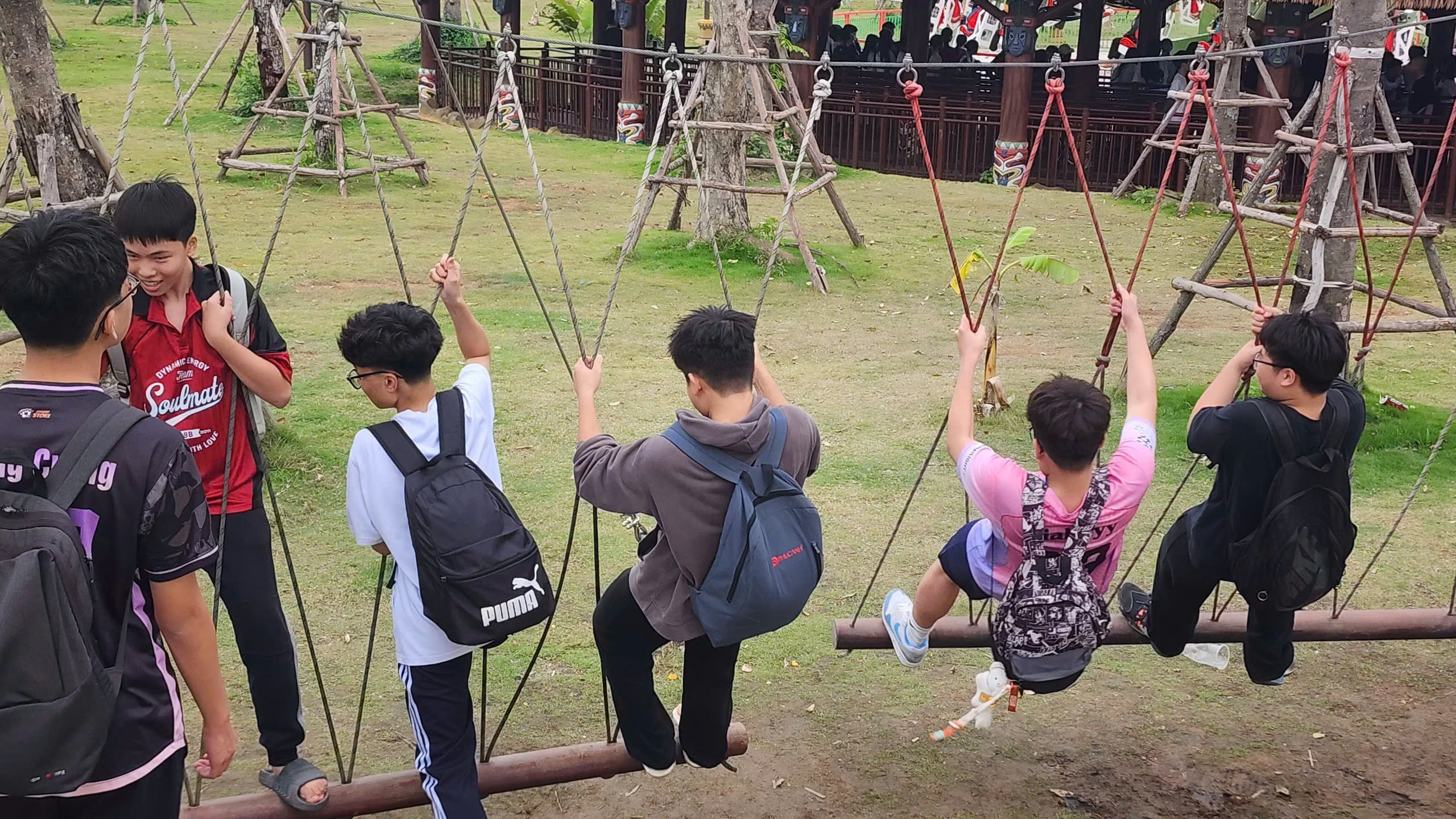 Khi sự hào hứng đã được “kích hoạt”, cả nhóm tiến đến khu Vùng đất chiến binh với thử thách vượt chướng ngại vật trên cao. Từ dưới nhìn lên, những thanh gỗ và sợi dây treo lơ lửng khiến tôi không khỏi chần chừ. Nhưng rồi, khi đã bước lên và từng bước di chuyển giữa độ cao, tôi nhận ra rằng điều khó nhất không phải là thử thách, mà là vượt qua chính nỗi sợ của mình. Tiếng cổ vũ của bạn bè phía sau chính là động lực lớn nhất giúp tôi hoàn thành hành trình ấy.
