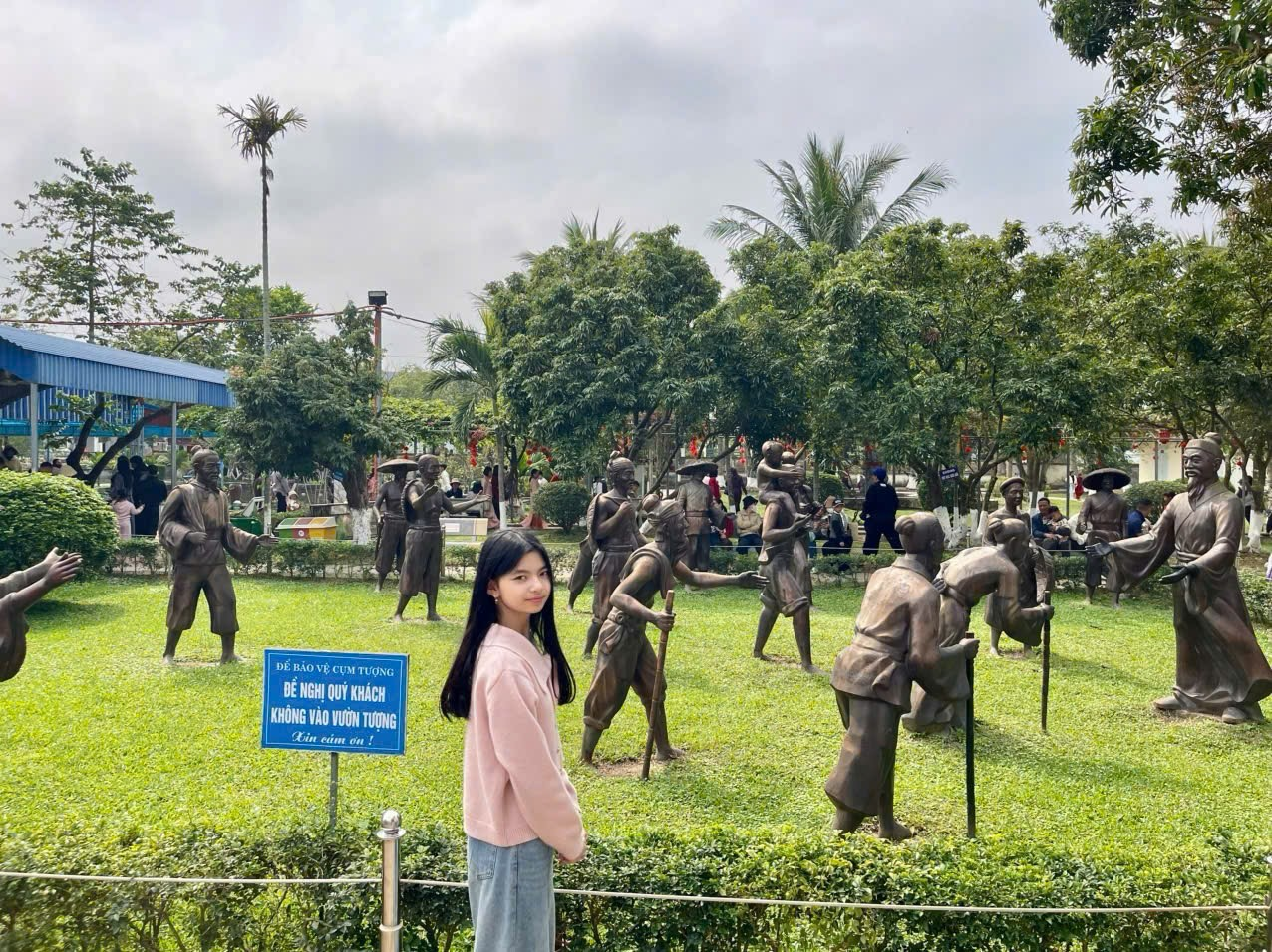 Đi sâu vào khu tưởng niệm, em dừng lại thật lâu trước tượng Trạng nguyên Nguyễn Bỉnh Khiêm trong dáng ngồi giảng dạy. Trong dáng ngồi ung dung, ánh mắt hiền từ, điềm tĩnh nhưng sâu trong đó là sự sáng suốt, ông như đang lặng lẽ trao đi tri thức cho từng thế hệ. Ở đó, là những học trò thuộc nhiều tầng lớp khác nhau: từ đứa trẻ thơ vừa chập chững với từng con chữ, đến những mái tóc đã bạc phơ nhưng vẫn lặng lẽ ngồi nghe giảng, từ người áo dài với dáng vẻ tri thức, đến cả những người nông dân chất phác cùng vẻ lam lũ của ruộng đồng. Tất cả hình ảnh ấy, dường như đã khiến em chợt nhận ra rằng, có lẽ tri thức không thuộc về riêng một giai cấp nào, chúng cũng không hề bị giới hạn trước ranh giới của tuổi tác, bởi, chúng chính là ngọn đuốc sáng lặng thầm soi đường, và ở đó, có vị Trạng Trình tài danh ấy, là người cầm đuốc, cho mỗi con người ta trên hành trình trưởng thành.
