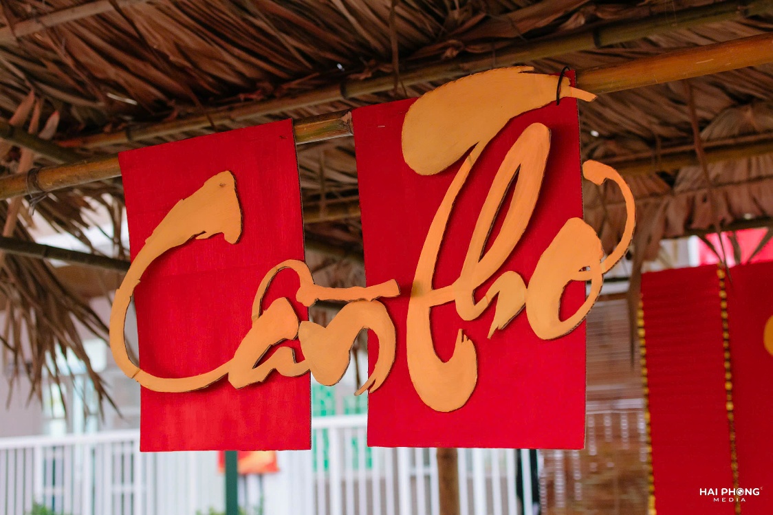 Ngôi nhà được thiết kế theo kiểu nhà truyền thống Nam Bộ, với mái lá đơn sơ, hàng hiên rộng và không gian mở, tạo cảm giác gần gũi, thân quen. Trước nhà là hình ảnh ghe xuồng nhỏ chở đầy hoa trái gợi nhớ đến cuộc sống sinh hoạt gắn liền với sông nước của người dân Cần Thơ. Xung quanh nhà được trang trí bằng cúc vàng rực rỡ – loài hoa đặc trưng của ngày Tết phương Nam, tượng trưng cho sự sung túc, may mắn và hạnh phúc.