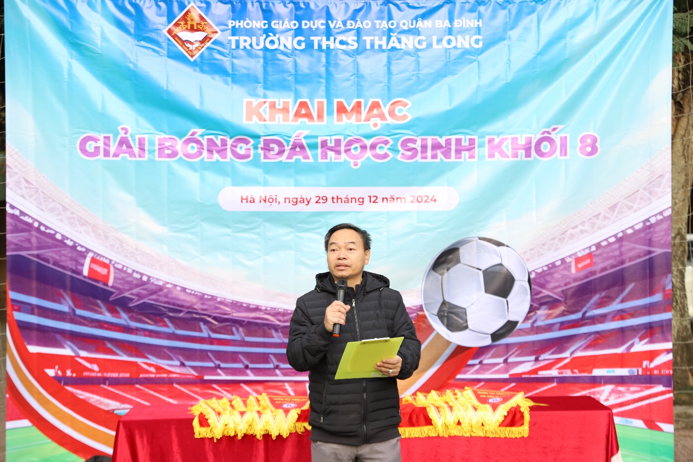 Sau phần cử hành Lễ khai mạc đầy trang nghiêm là phần phát biểu của thầy giáo Hoàng Hà – Phó bí thư chi bộ, Hiệu phó nhà trường. Trong bài phát biểu, thầy cũng nhấn mạnh đến việc phát triển toàn diện cho HS cả về đạo đức, kĩ năng và thể chất đồng thời cũng là cơ hội ươm mầm cho các tài năng nhí của trường THCS Thăng Long. Tiếp ngay sau đó bác Hồng Anh đại diện hội CMHS nhà trường và cô Đặng Thị Ngọc Hà Phó Hiệu trưởng nhà trường cũng có những lời dặn dò , động viên, cổ vũ các con tham gia giải đấu.