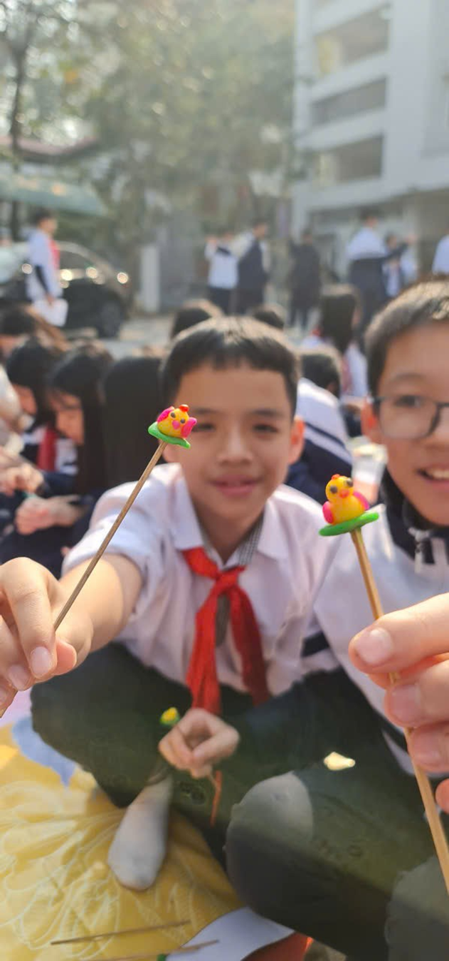 Đến ngày hội, ngoài những sản phẩm của bác nghệ nhân, lớp em cũng được phép bán những sản phẩm do chính tay mình tạo ra. Nhờ tài mời khách khéo léo của các “cao thủ”, trại của chúng em bán được rất nhiều tò he. Nhiều thầy cô và các bạn từ lớp khác ghé mua ủng hộ, không tiếc lời khen ngợi, khiến chúng em càng hào hứng hơn.