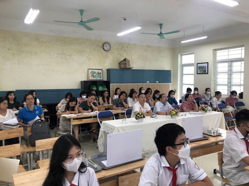 Tham dự tiết chuyên đề, có đồng chí Cấn Thanh Hải – chuyên viên phòng GD & ĐT quận Ba Đình, Nhà giáo ưu tú Nguyễn Thanh Hà – Bí thư Chi bộ, Hiệu trưởng nhà trường, thầy Hoàng Mạnh Hà – Phó hiệu trưởng nhà trường cùng các thầy cô giảng dạy bộ môn Vật lí của các trường THCS quận Ba Đình.