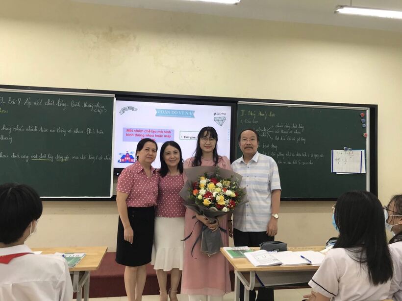 Vào một ngày cuối thu với nắng vàng rực rỡ, chan hòa trên những vòm cây trong sân của ngôi trường THCS Thăng Long, dưới sự hướng dẫn của cô giáo Phạm Thị Thu Hoài, học sinh lớp 8C đã được trải qua một tiết học chuyên đề môn Vật lí vô cùng lý thú với chủ đề: Áp suất chất lỏng – Bình thông nhau.