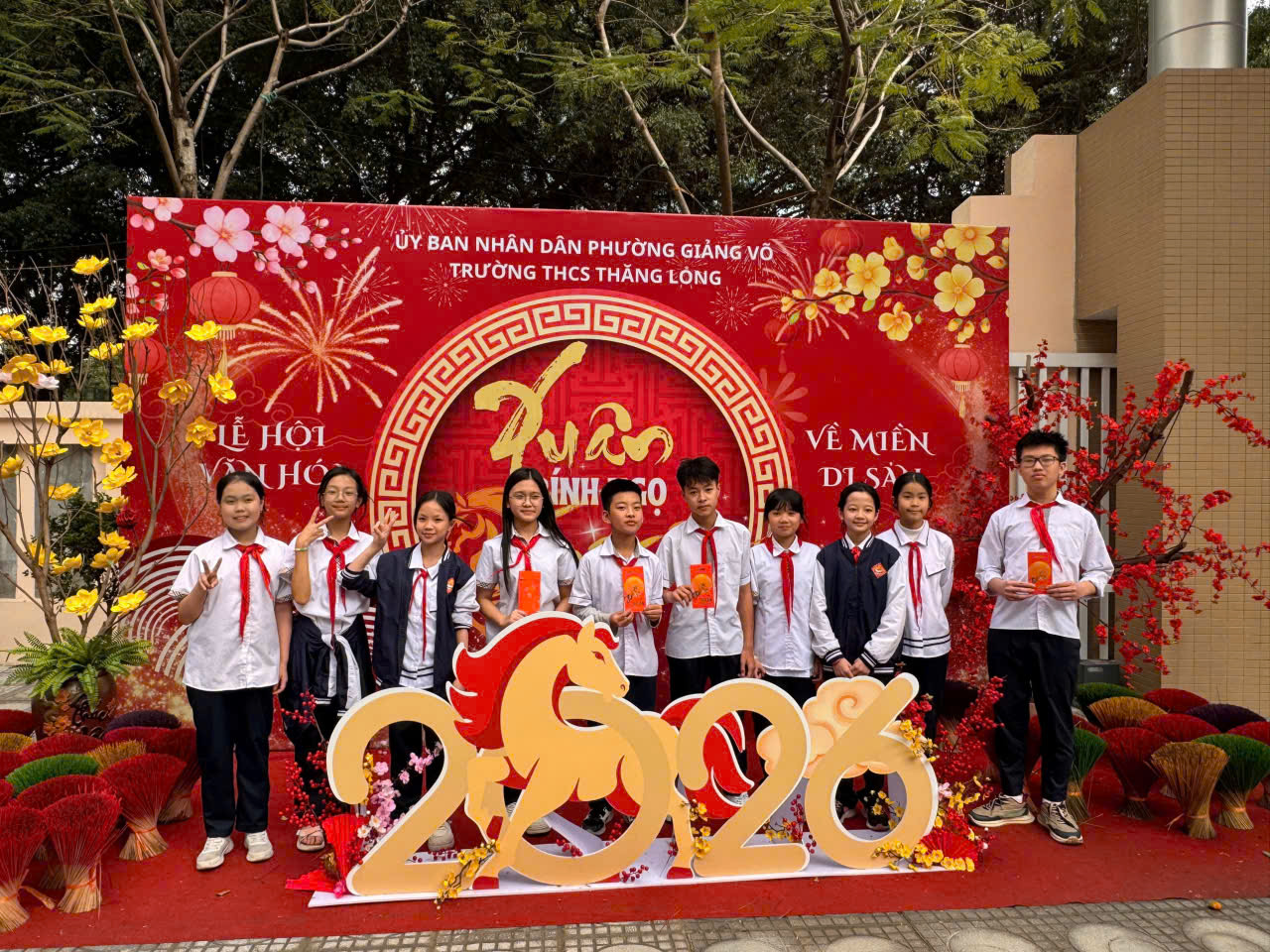 Trong những ngày cuối đông, khi những tia nắng vàng dịu nhẹ bắt đầu hong khô cái lạnh se sắt và sắc xuân khẽ len vào từng nhành cây, sân trường THCS Thăng Long như được khoác lên mình một tấm áo mới. Không còn vẻ yên ả thường ngày, nơi đây bỗng trở nên rộn ràng, náo nhiệt bởi tiếng rao trong trẻo xen lẫn tiếng cười giòn tan. Âm thanh ấy hòa quyện vào nhau, vang lên như một khúc nhạc xuân tươi vui, đánh thức trong lòng mỗi người niềm háo hức khó tả.