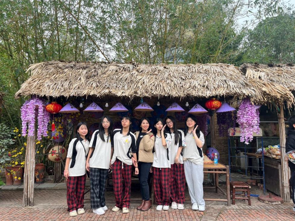 Sau khi được các bác phụ huynh, cô giáo chủ nhiệm và anh hướng dẫn viên dặn dò, chúng tôi bắt đầu khám phá. Nơi đây vẫn mang vẻ sôi động và màu sắc của mùa Tết Nguyên Đán vừa rồi. Khi ta đi dạo vòng quanh, mới thấy được sự thoải mái và thư giãn mà nơi đây mang lại. Càng bước chúng tôi lại càng khám phá được nhiều trò chơi thú vị. Ghé qua nhà vui chơi Tagada, tôi thấy như bước vào một thể giới khác với âm nhạc và sắc màu rực rỡ, thu hút rất nhiều các bạn học sinh yêu thích trải nghiệm cảm giác mạnh. Bên cạnh đó, phòng tranh 3D cũng là địa điểm thu hút không kém. Tại đây hình ảnh thiên được mô phỏng sống động. Chúng tôi như được hòa mình vào thế giới đầy màu sắc, tạo cảm giác vô cùng gần gũi. Đặc sắc không kém, khu vực mê cung huyền bí cũng tràn ngập tiếng cười từ các bạn học sinh. Chúng tôi lạc nhau mà chẳng thấy đâu, phải lâu sau đó mới tìm được và giải mã mê cung tại đây. Còn khu vực cổng làng như một nơi riêng biệt mang phong cách truyền thống đậm đà giữa những màu sắc hiện đại xung quanh. Ở đây, ta được trải nghiệm nặn bánh trôi, viết thư pháp và có những gian hàng bán đồ ăn vô cùng hấp dẫn… Tất cả cũng đã khắc họa nên một bức tranh kỷ niệm vô cùng náo nhiệt, tươi vui.
