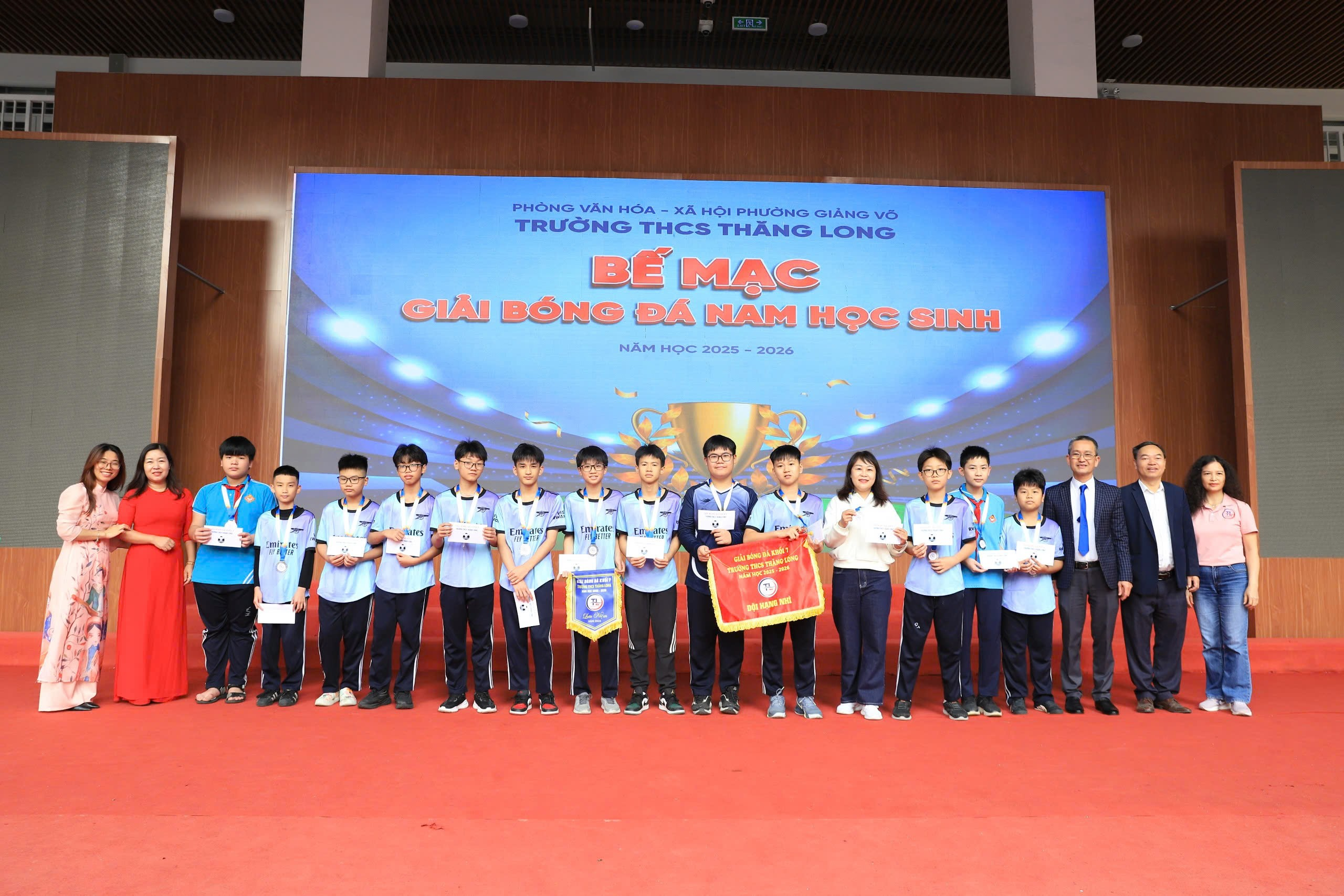 Sáng ngày 16/3, trong không khí trang nghiêm nhưng không kém phần hào hứng của buổi lễ chào cờ đầu tuần, trường THCS Thăng Long đã chính thức tổ chức Lễ Bế mạc và trao giải Giải bóng đá khối 7. Những nụ cười hạnh phúc, những giọt nước mắt tiếc nuối và cả tinh thần thể thao cao thượng đã tạo nên một khúc vĩ thanh đầy cảm xúc cho mùa giải năm nay.
