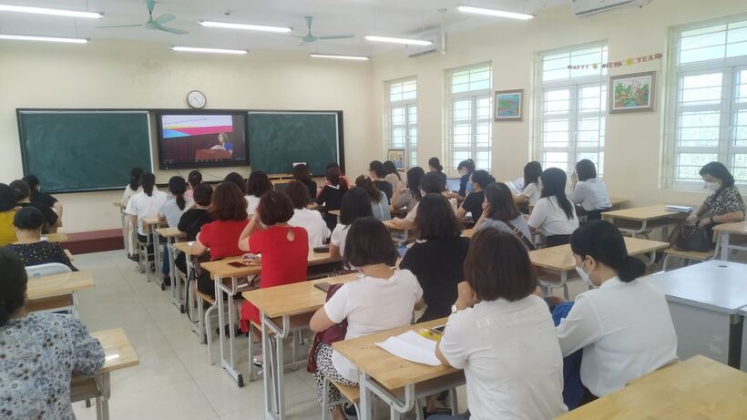 Điểm cầu của Phòng GD Quận Ba Đình được đặt tại Trường THCS Thăng Long