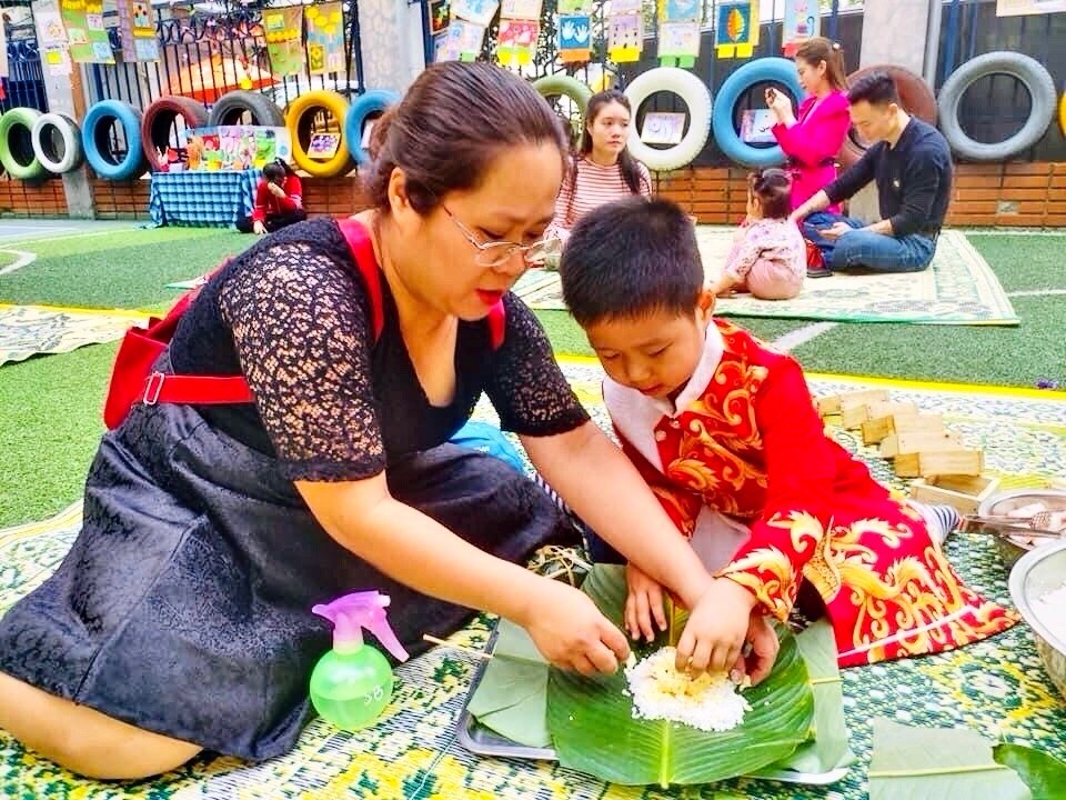 Ngay từ khi còn học ở các lớp mầm non, tôi đã từng được tham gia ngày hội mừng xuân của trường vào dịp Tết và tôi đã được các cô giáo hướng dẫn làm những chiếc bánh xinh xinh. Vào năm cuối của lớp Kinder, tôi đã hoàn thành được một chiếc bánh nhỏ dưới sự hướng dẫn của cô giáo và sự giúp đỡ của mẹ. Sau đó, tôi được mang bánh về nhà ăn thử và tôi cũng mê bánh chưng từ đó.