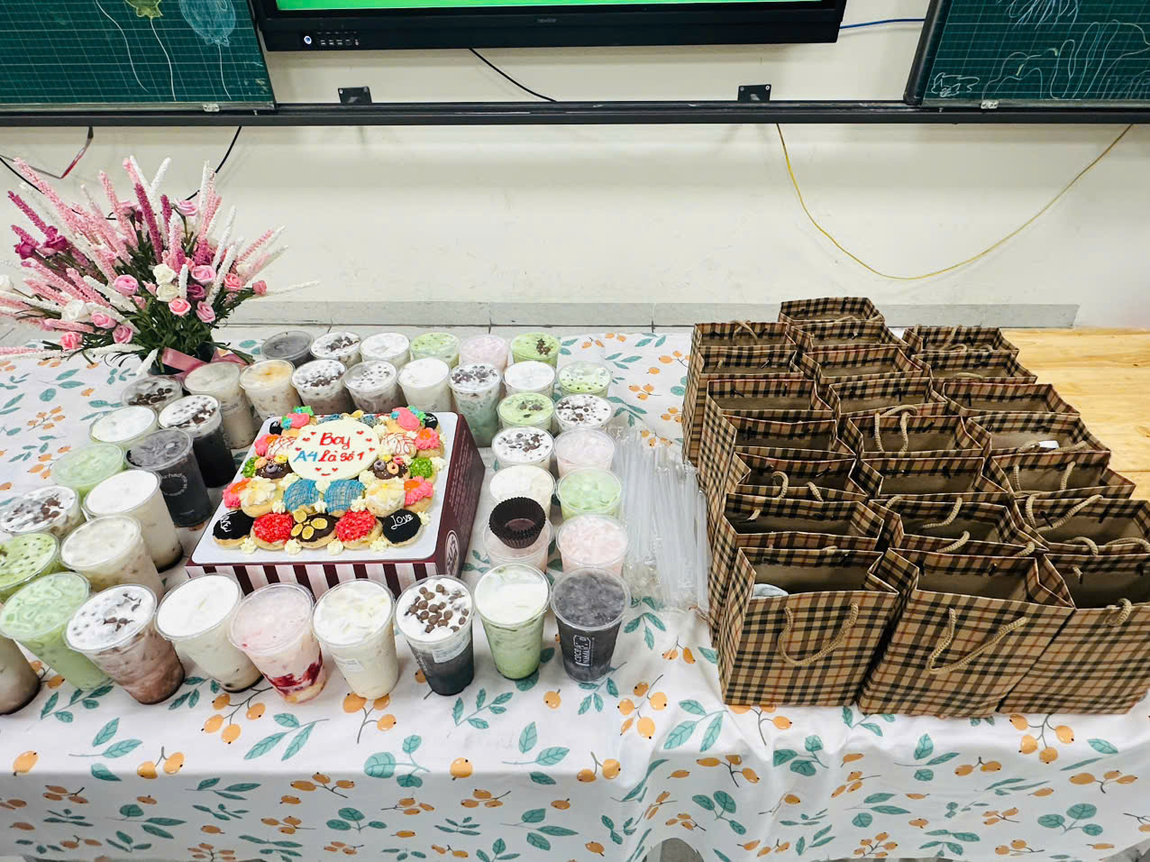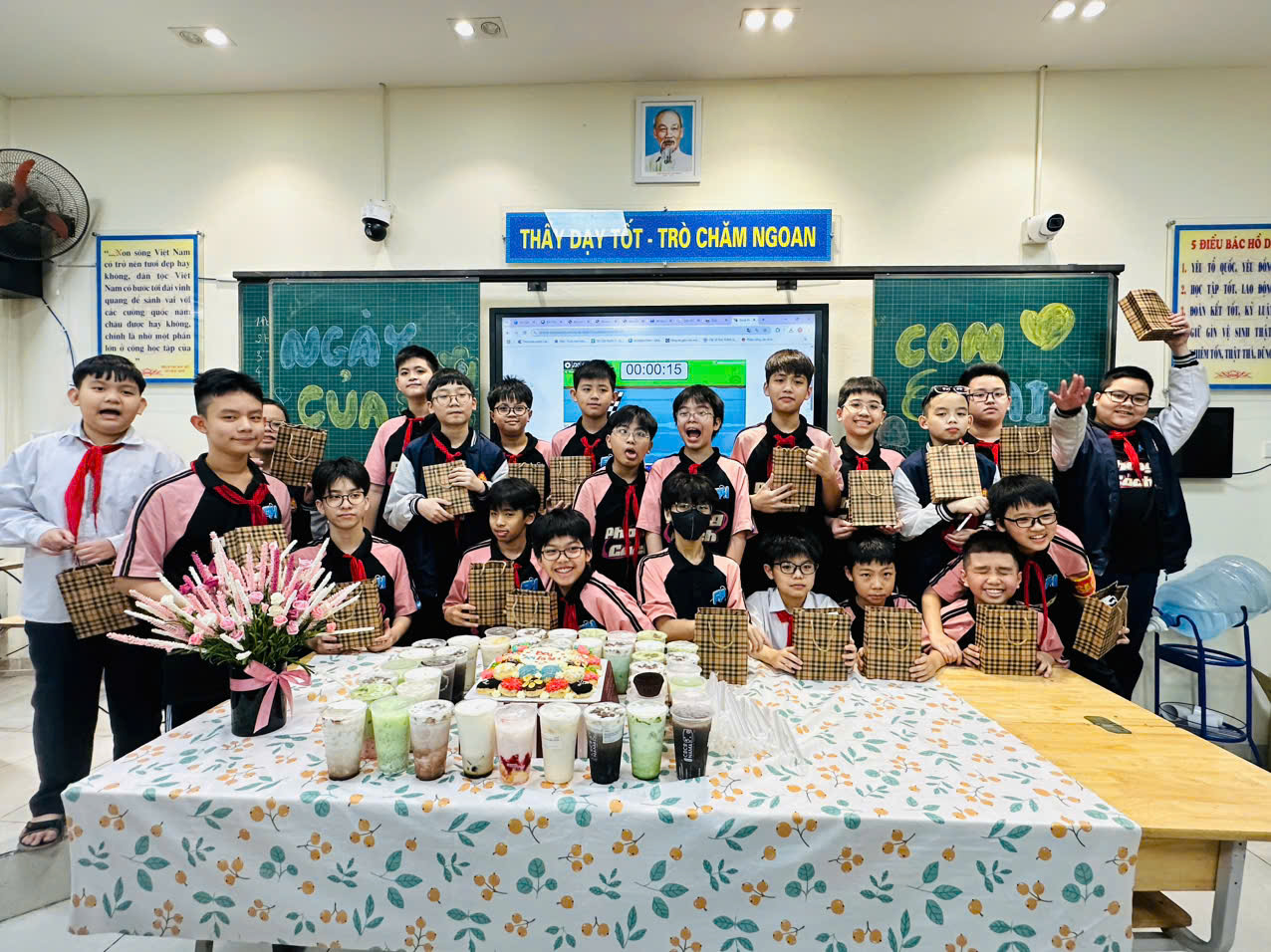 Kết thúc đợt kiểm tra GKII, cô giáo chủ nhiệm Lê Thu Thủy đã tổ chức cho tập thể lớp 6A4 một buổi liên hoan vô cùng bất ngờ tại lớp học thân thương của mình, một giờ học thật ấm áp và đầy ý nghĩa để chúc mừng các bạn nam nhân dịp Ngày của Con trai – một ngày tuy không chính thức nhưng lại mang theo nhiều yêu thương và niềm vui cho toàn bộ thành viên của cả lớp.