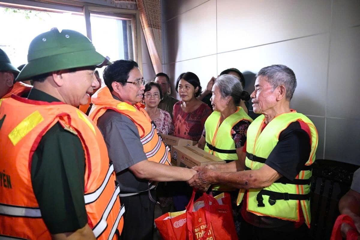 (Thủ tướng Phạm Minh Chính đi thăm hỏi động viên đồng bào vùng lũ)