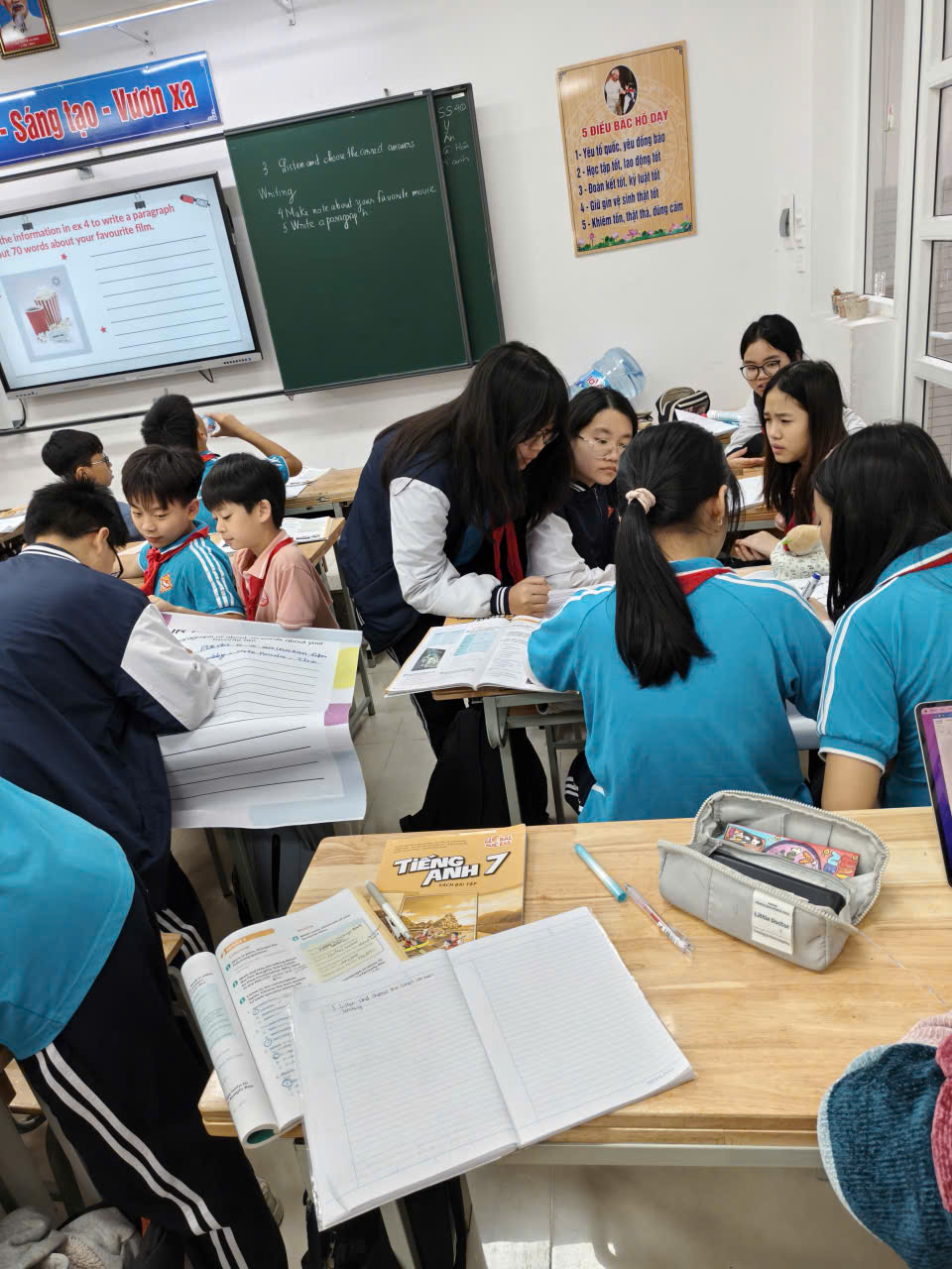 Điểm nổi bật của tiết dạy là việc giáo viên linh hoạt sử dụng nhiều phương pháp dạy học tích cực như: hoạt động nhóm, đặt câu hỏi gợi mở, khuyến khích học sinh trình bày ý kiến trước lớp. Nhờ đó, học sinh không chỉ luyện tập kỹ năng tiếng Anh mà còn phát triển sự tự tin, khả năng giao tiếp và tinh thần hợp tác.