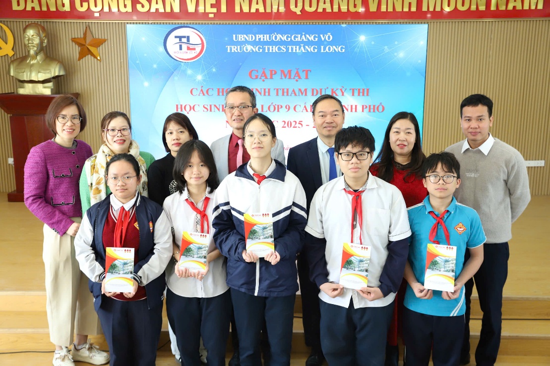 Sáng ngày 08/01/2026, Trường THCS Thăng Long đã long trọng tổ chức buổi gặp mặt giữa Ban giám hiệu với các thầy cô phụ trách và học sinh tham dự Kỳ thi học sinh giỏi lớp 9 cấp Thành phố năm học 2025–2026. Buổi gặp mặt diễn ra trong không khí trang trọng, ấm áp và tràn đầy niềm tin cùng sự quyết tâm.