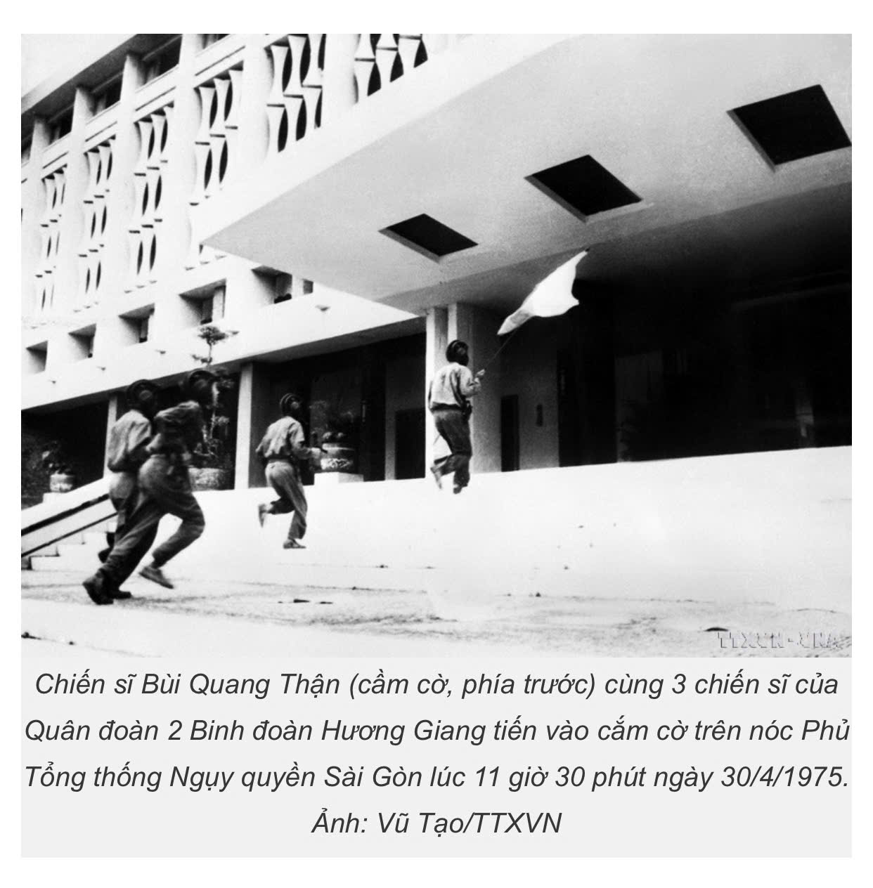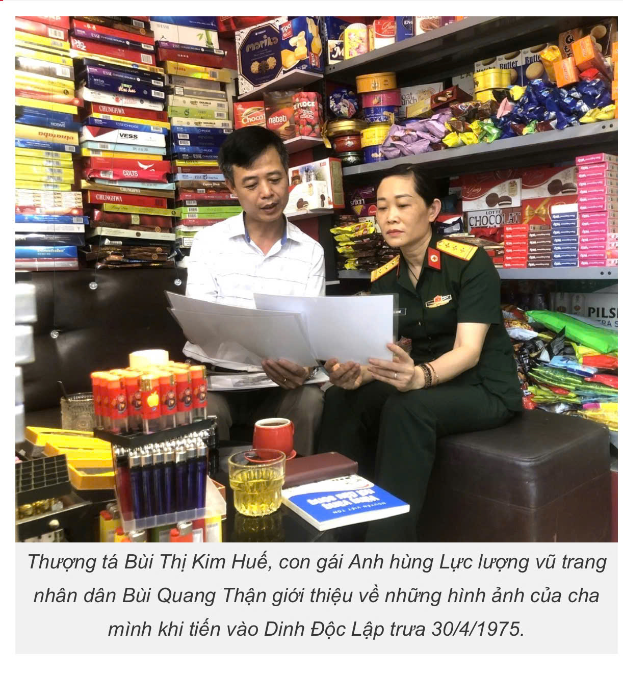 Những ngày tháng Tư lịch sử, lật giở trang sử hào hùng của dân tộc, tôi nghe tim mình thổn thức khi nghĩ đến một cái tên rất đỗi thân quen – ông ngoại đáng kính của tôi – Anh hùng Lực lượng vũ trang nhân dân – đại tá Bùi Quang Thận, người lính quân đội nhân dân Việt Nam đầu tiên đã cắm lá cờ giải phóng trên nóc Dinh Độc Lập vào trưa ngày 30/4/1975 – thời khắc thiêng liêng đánh dấu chiến thắng vĩ đại của dân tộc, kết thúc chặng đường chiến đấu gian khổ, hy sinh vì độc lập, tự do.